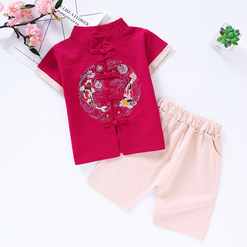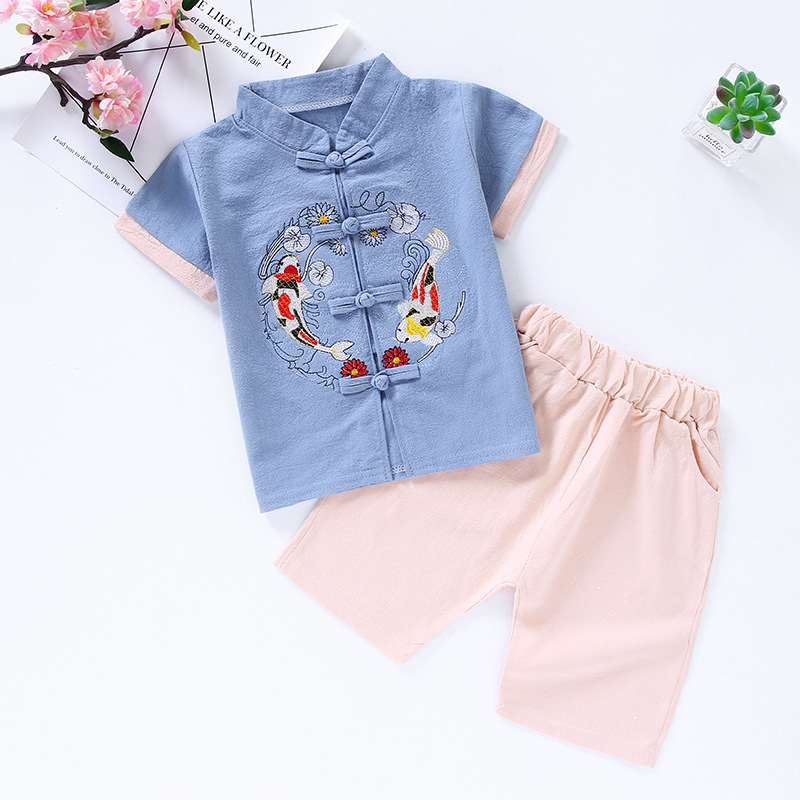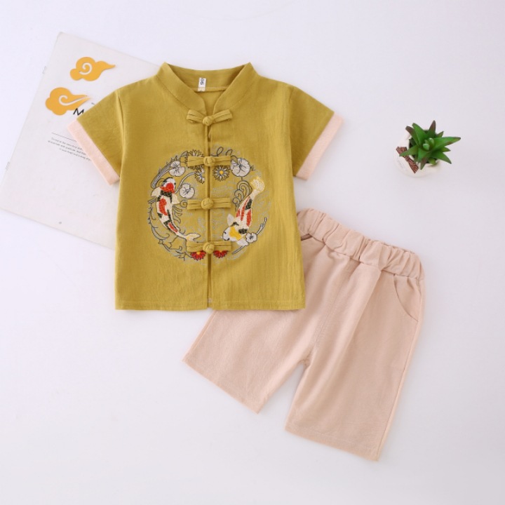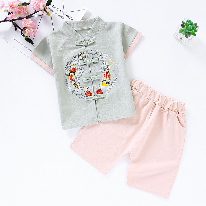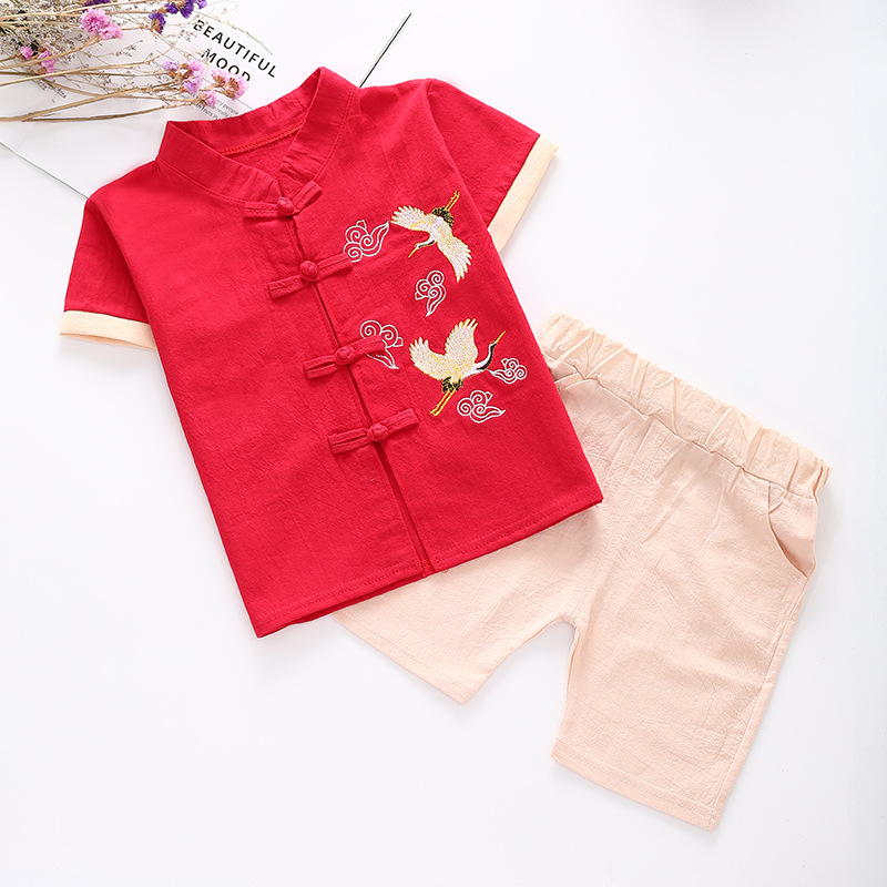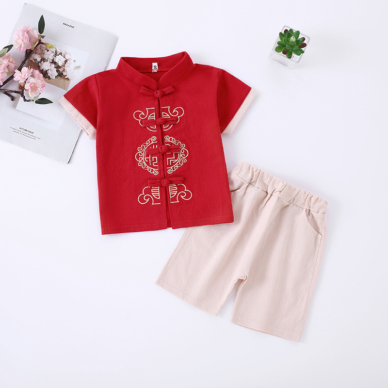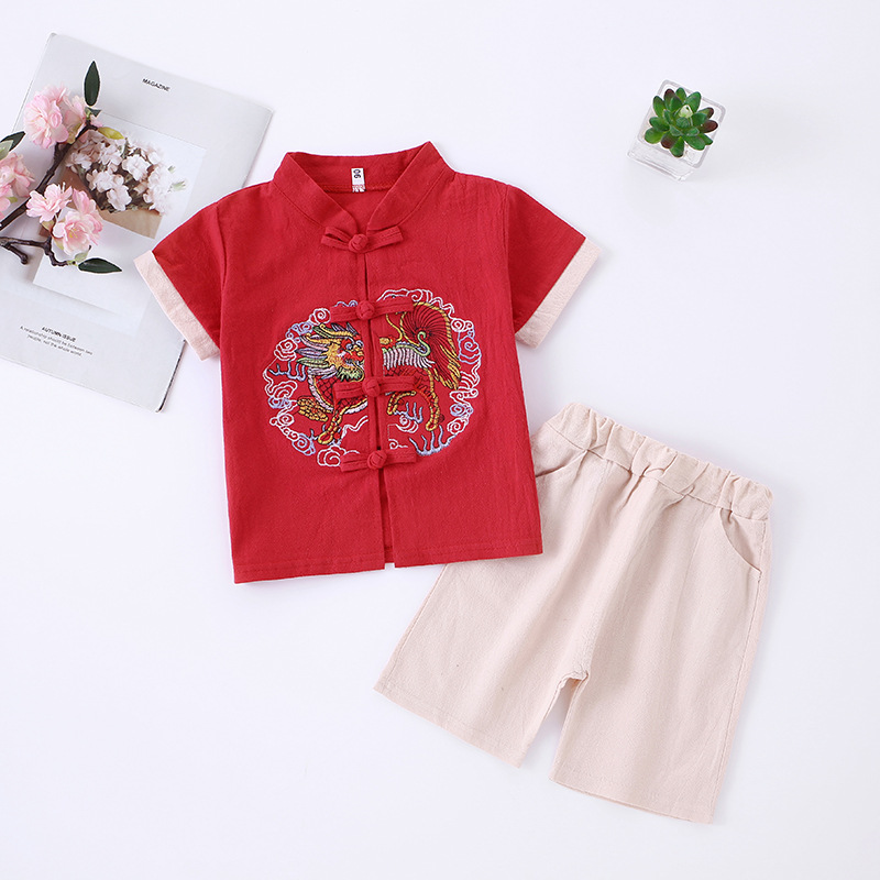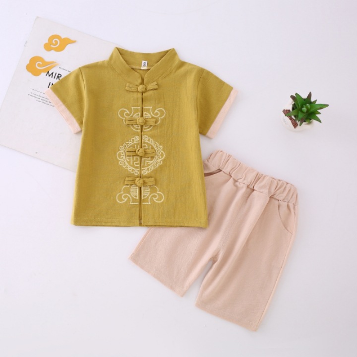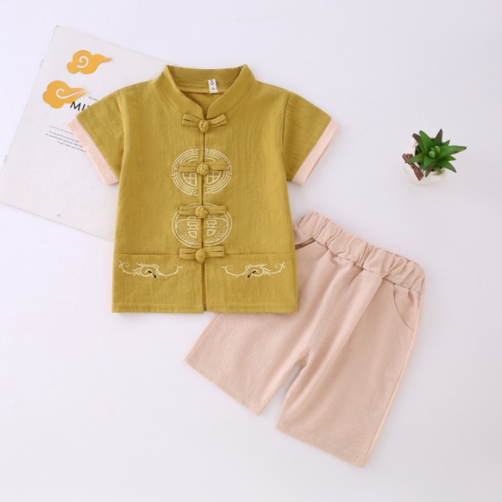Детская одежда Платье для мальчиков-ханьфу, платье для одного года, детский костюм Тан с короткими рукавами в китайском стиле, детский винтажный костюм с вышивкой в стиле национальной моды, летний