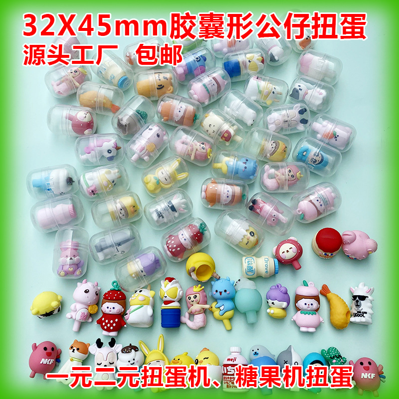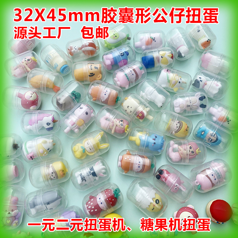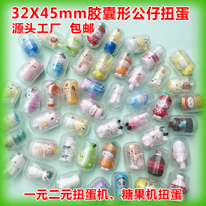 32mmX45mm胶囊形公仔扭蛋用于1元2元投处扭蛋机,用于游戏机礼品机,或者作为礼品、抽奖球扭蛋玩具单独售卖