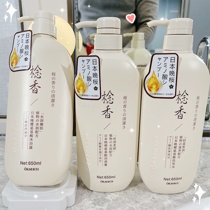 Набор шампунь, гель для душа и кондиционер Xiaohongshu, три предмета, пушистый и ароматный, Ogalaini, против перхоти и для контроля жирности