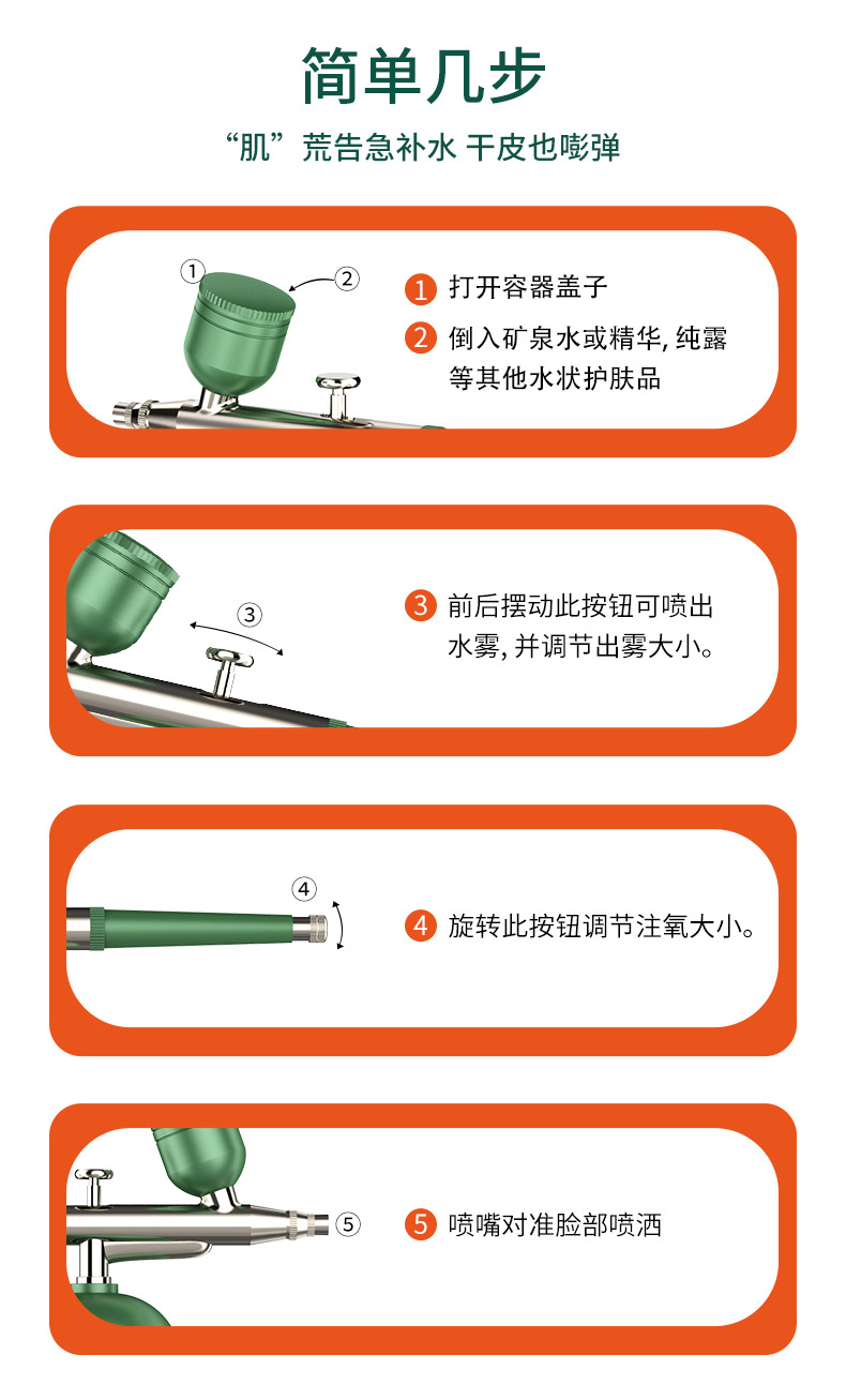 Увлажняющий инструмент Домашний импортный косметический инструмент Увлажняющий портативный увлажняющий ручной распылитель Инструмент для ингаляции кислорода высокого давления