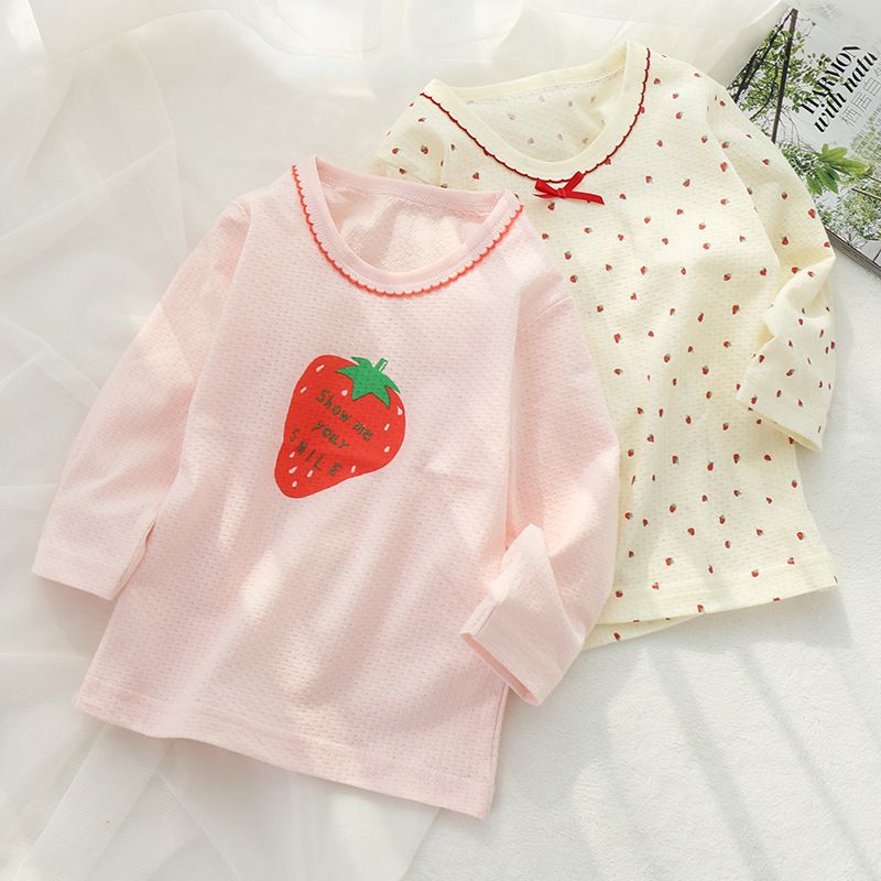 Новая весенне-летняя тонкая детская Домашняя одежда, хлопковый мягкий дышащий впитывающий Пот Топ для девочек, сумка из двух частей с длинным рукавом