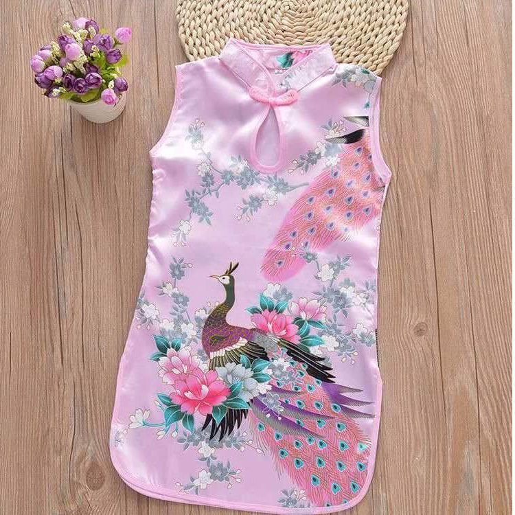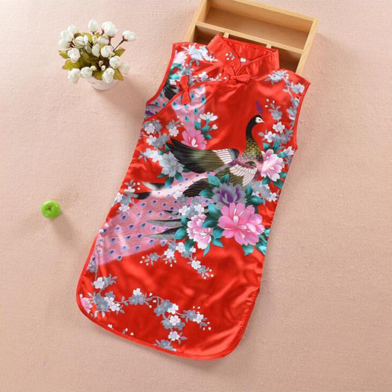 Классический красный Чонсам для девочек, детская одежда для выступлений с павлином, китайский стиль, новогодняя Детская одежда, одежда для выступлений, весна и лето