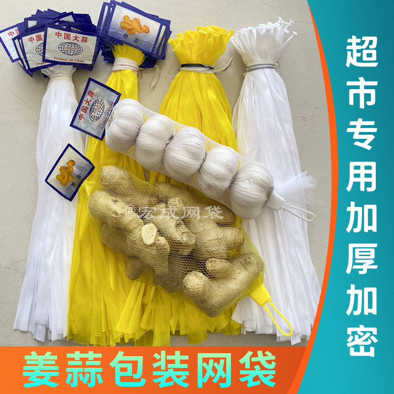 Имбирь Сетка Мешок Чеснок Сетка Мешок Дышащая Сетка Мешок Фрукты и овощи Сумка Желтый Белый Удлиненная Этикетка Мягкий Материал Сетка Фабрика
