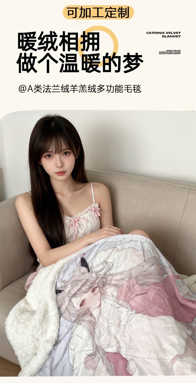 Плед из молочного вельвета класса А, на заказ, с мультяшным аниме-рисунком, фланелевый, двухслойный, утолщенный, из овечьего флиса, зимний плед