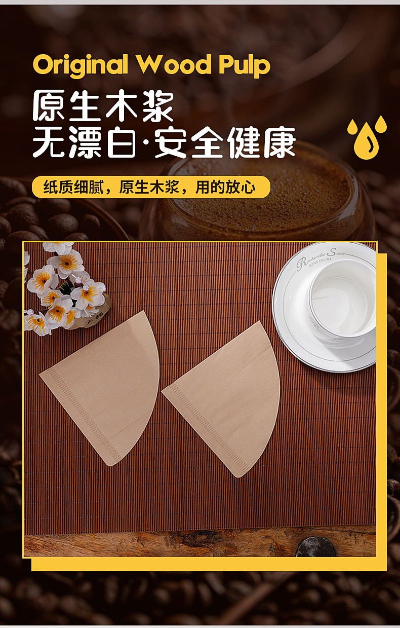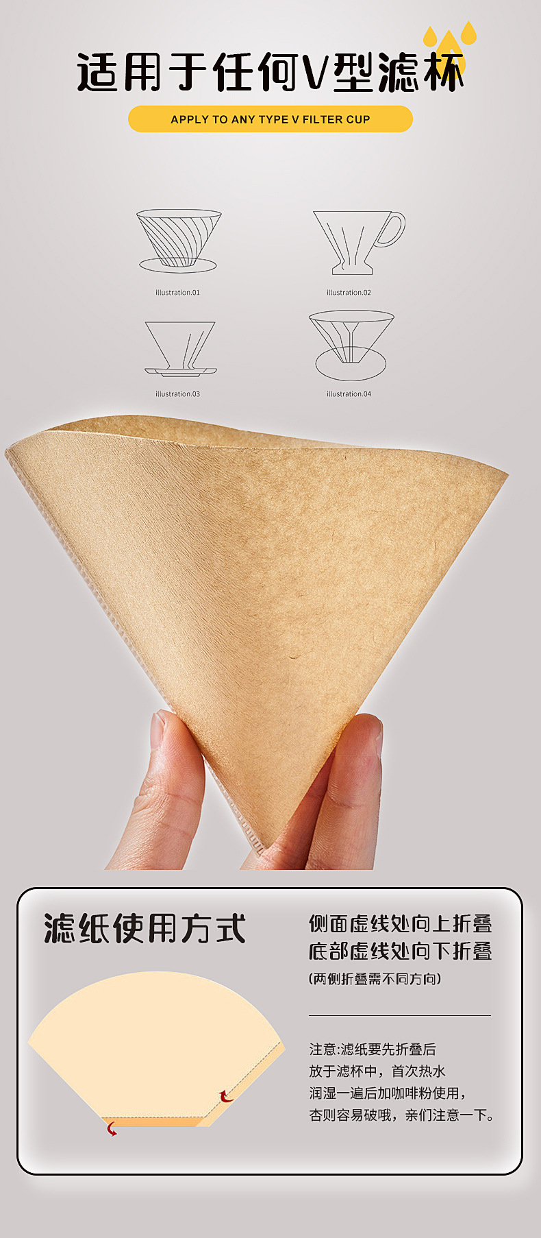 Завод оптовой сырой древесной массы капельный фильтр V-образный ручной фильтр для кофе бумажный одноразовый конус Американский фильтр для кофе бумага