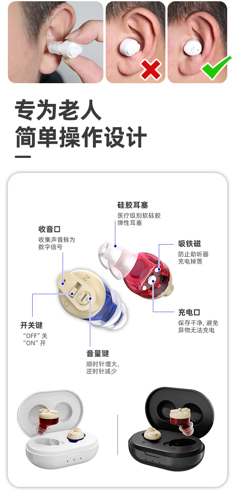 Трансграничный слуховой аппарат для пожилых людей магнитное всасывание зарядный бункер CIC Звуковой усилитель Набор Аксессуары hearing aids