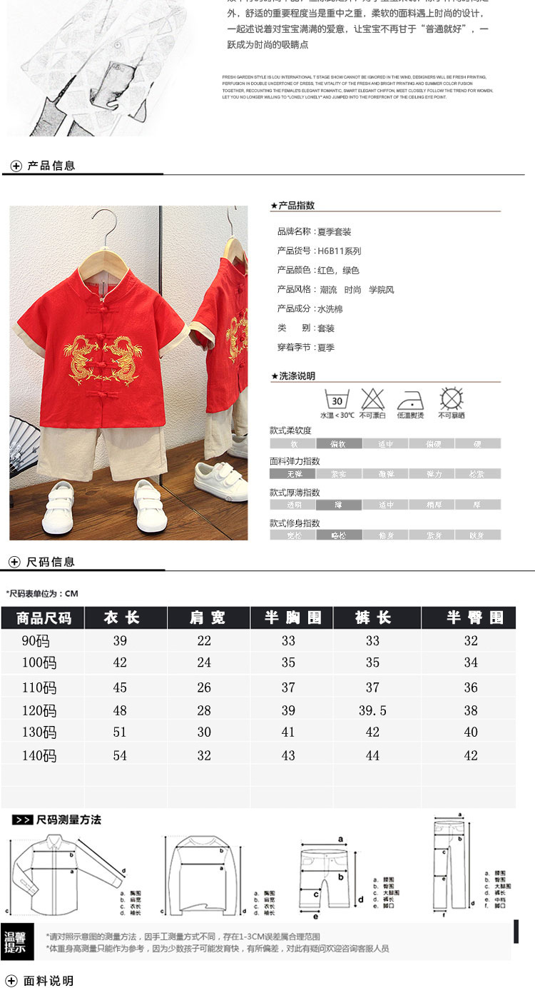 Мальчик Hanfu Летний костюм Тонкий китайский стиль ретро стиль детский стиль