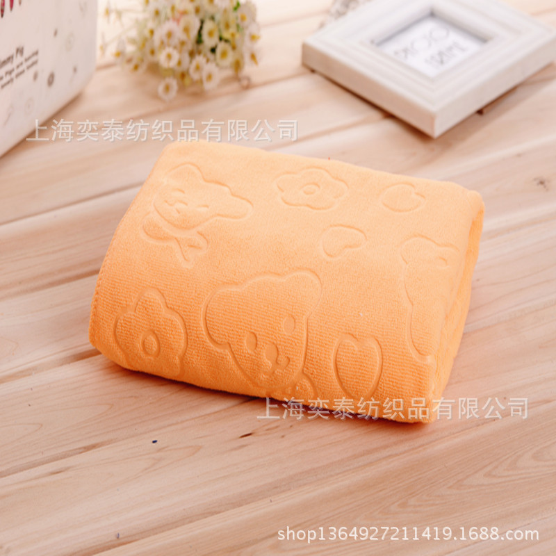 - 超细纤维压花浴巾涤锦材质具有强吸水的功能,超柔软精致的压花图案深受大家的喜欢,不掉毛 ,不掉色,是您居家旅游浴巾的首选。