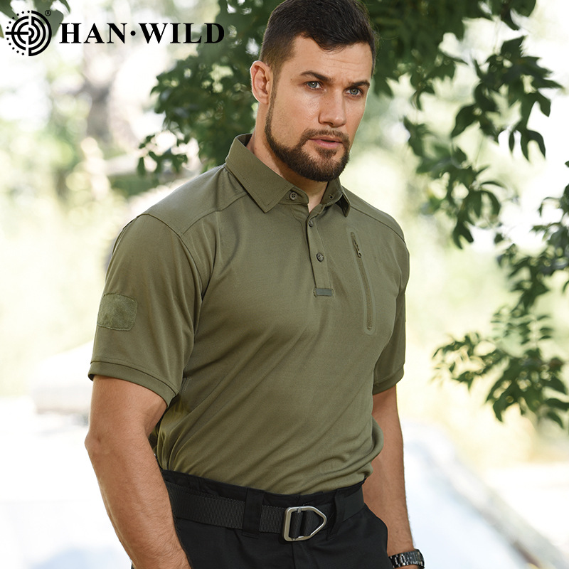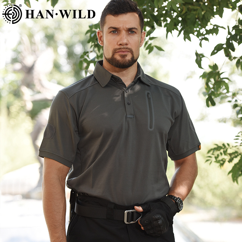 Уличная тактическая быстросохнущая футболка Hanye, Мужская Повседневная Эластичная рубашка-поло с лацканами и короткими рукавами