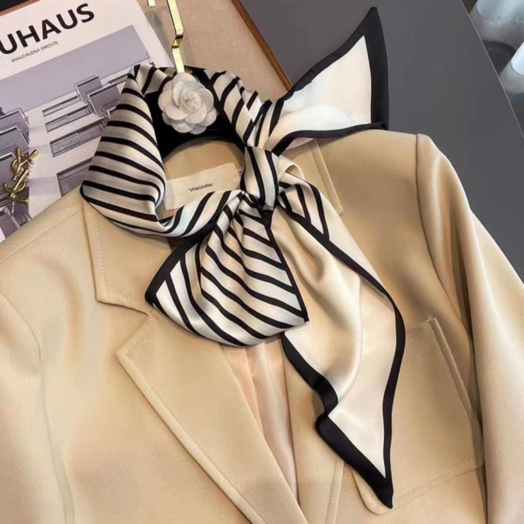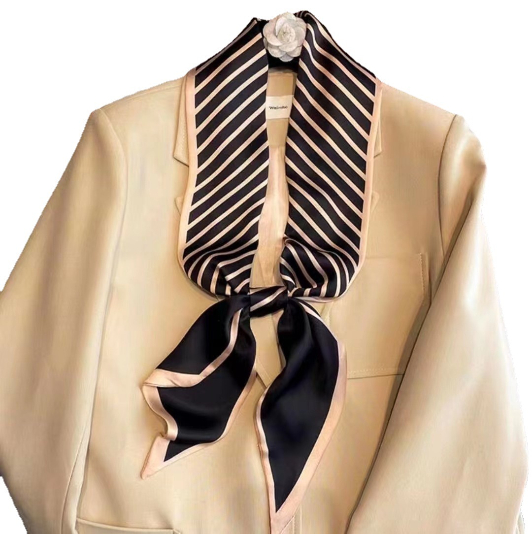 Новый шарф из искусственного шелка, полосатый шарф с коническим принтом, Южная Корея ins Wind librent, резинка для волос, женский Шелковый шарф оптом