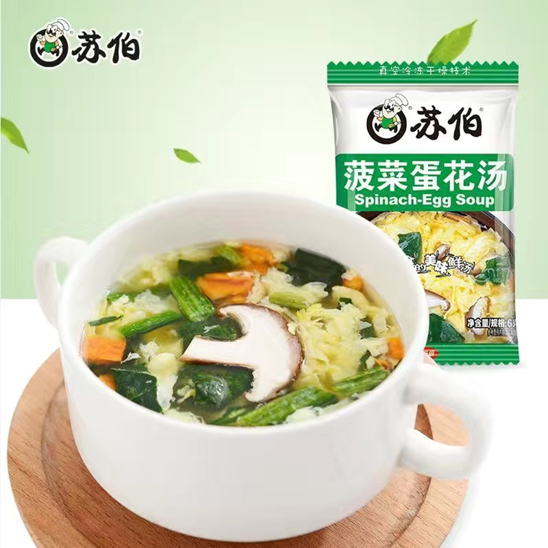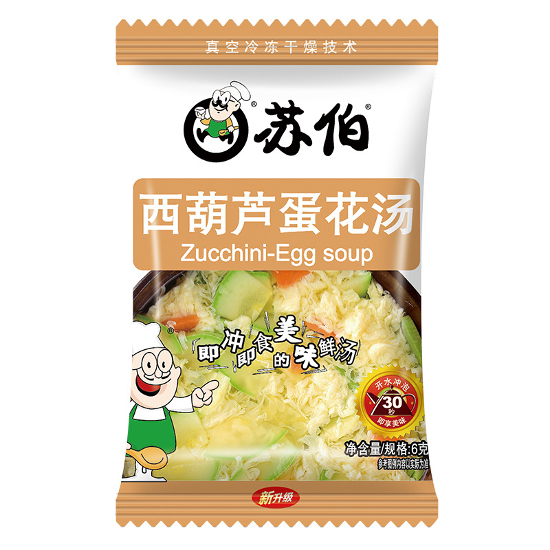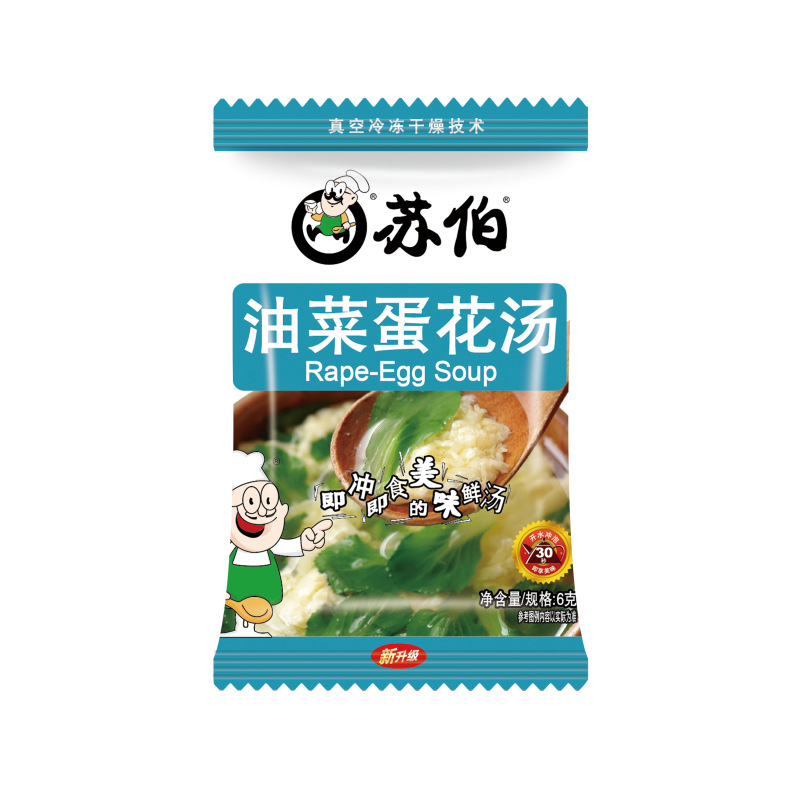 Шпинат яичный суп 6 г; Порфир яичный суп цветочный 6 г; Томатно-яичный суп 6 г; Китайский капустно-яичный суп 6 г; Свежий овощной суп Фуронг 6 г; Цуккини яичный суп 6 г; Нефритовый суп с редисом 6 г; Рапсовый яичный суп 6 г; Крабовый суп со вкусом рапса 6 г