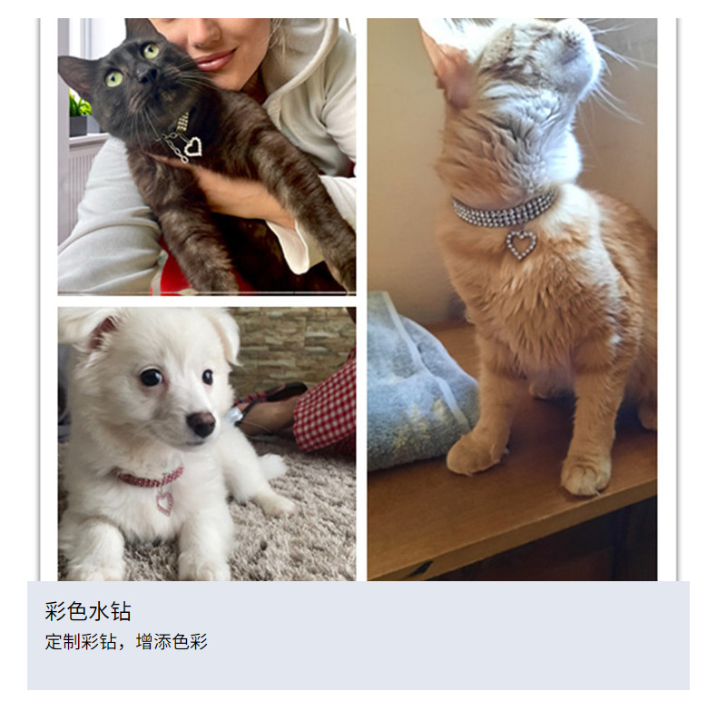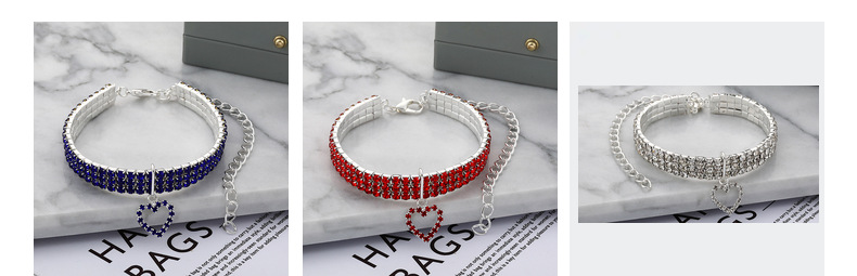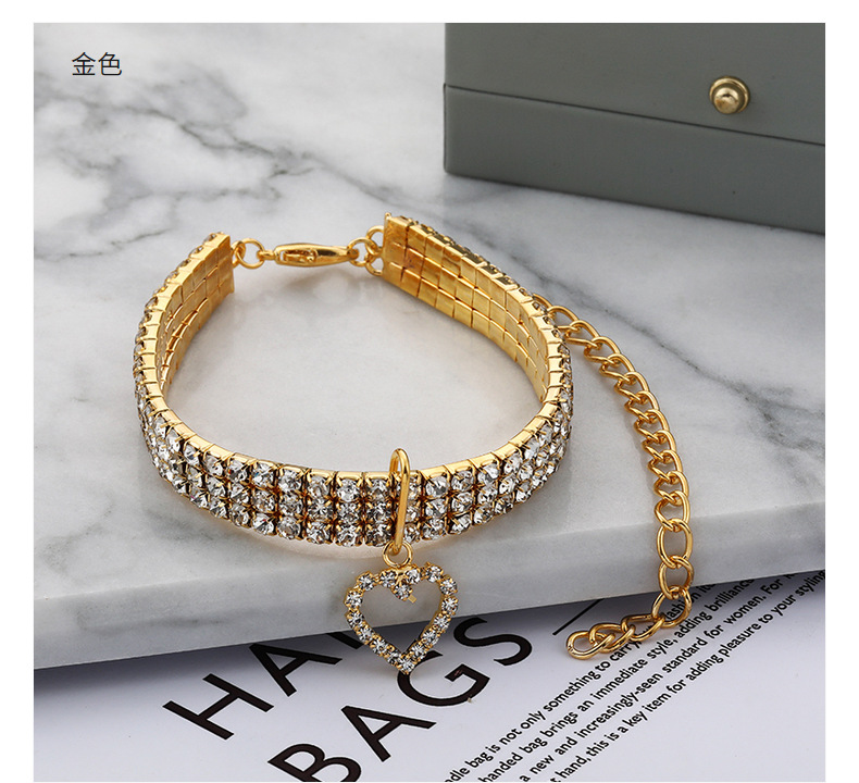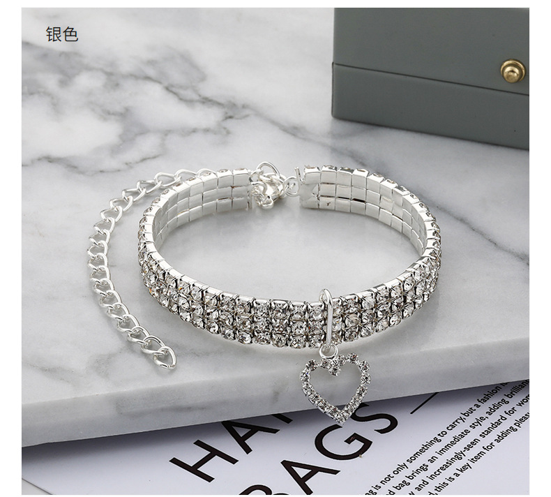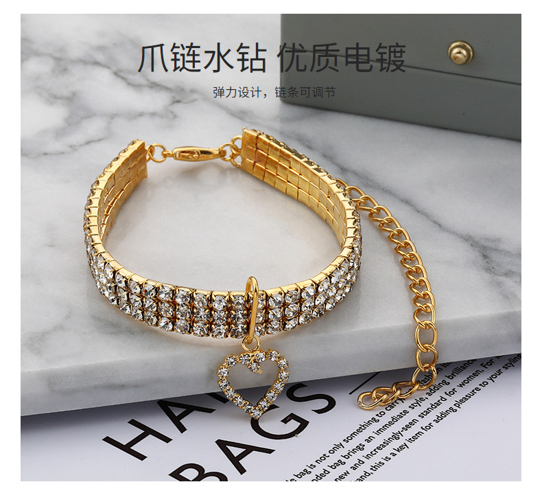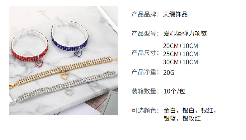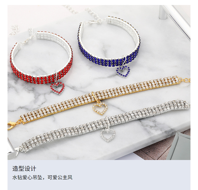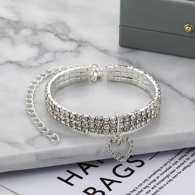 Трехрядное эластичное ожерелье со стразами для домашних животных Любовь Кулон Цепочка Кошка Собака Ошейник Товары для домашних животных Аксессуары для маленьких собак