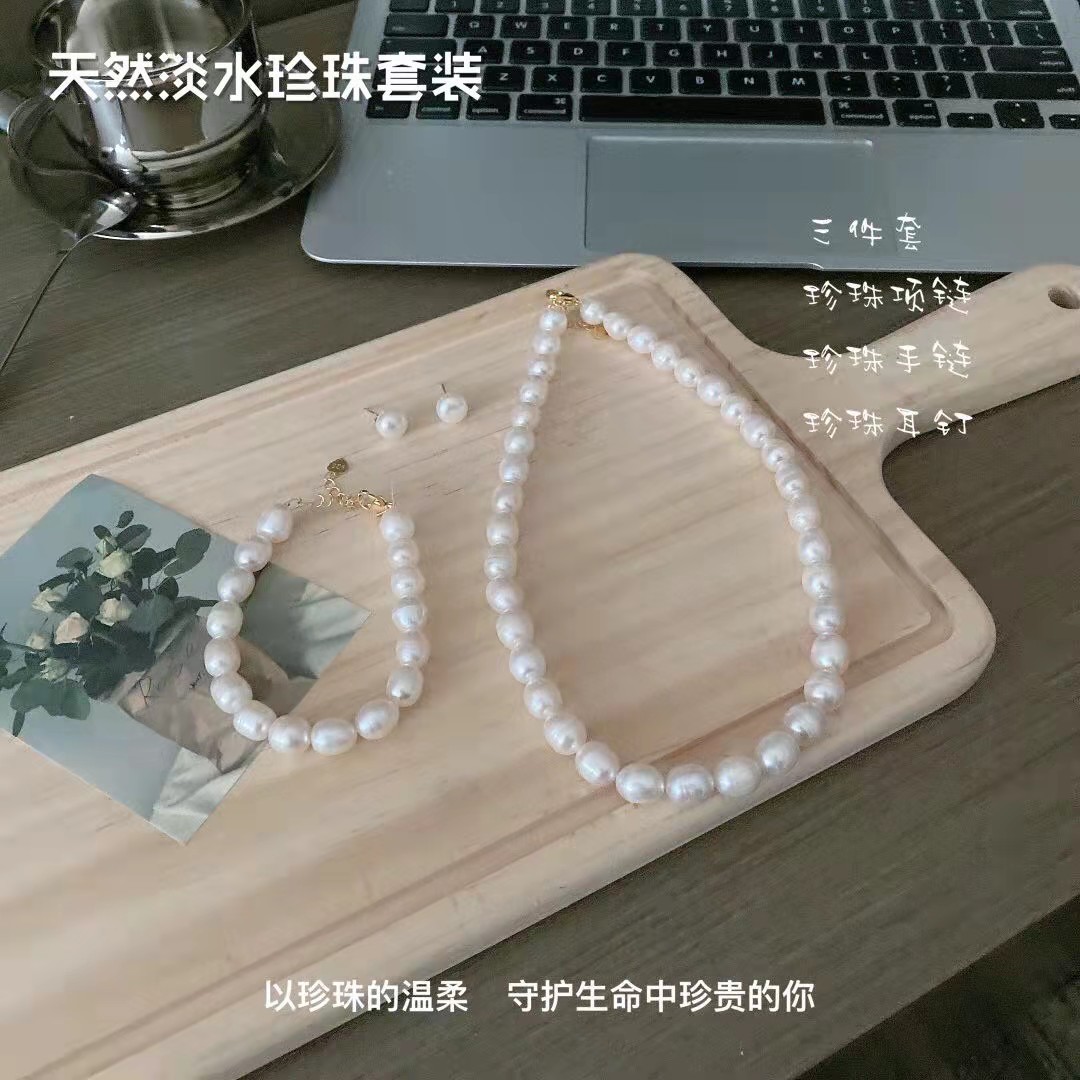 三八妇女节天然淡水珍珠套装母亲节礼物珍珠三件套项链手链耳钉