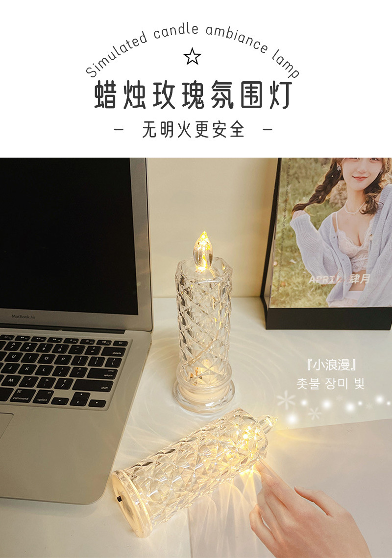 Креативная алмазная Роза лампа моделирование свеча лампа Светодиодная спальня прикроватный ночник лепестки роз Атмосфера лампы украшения