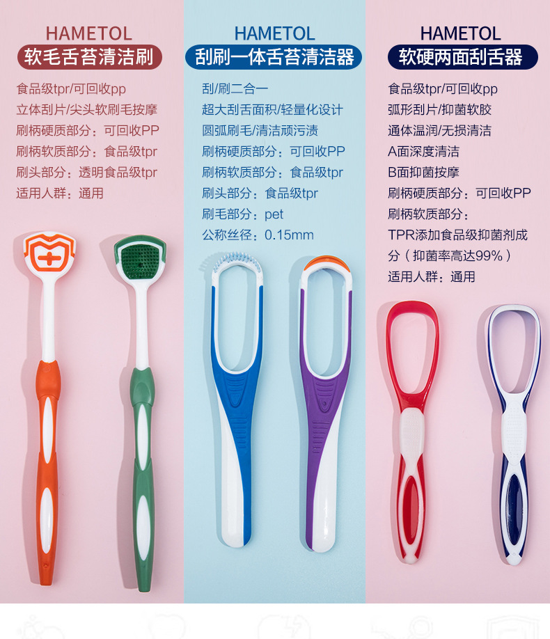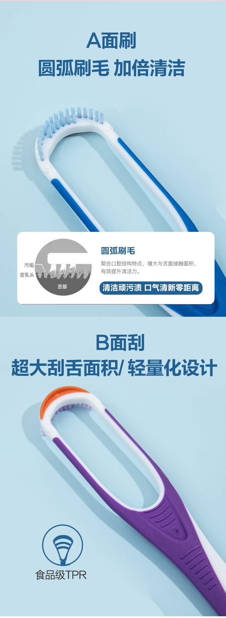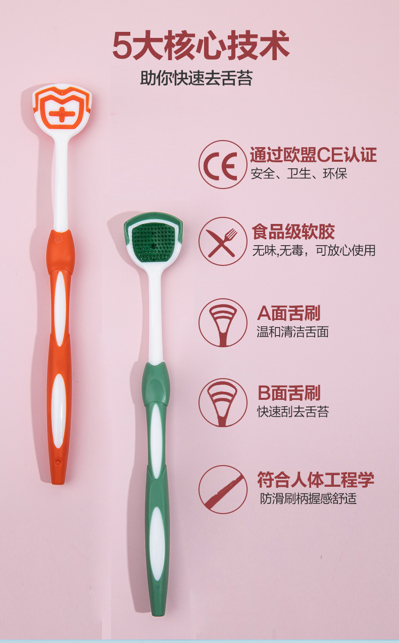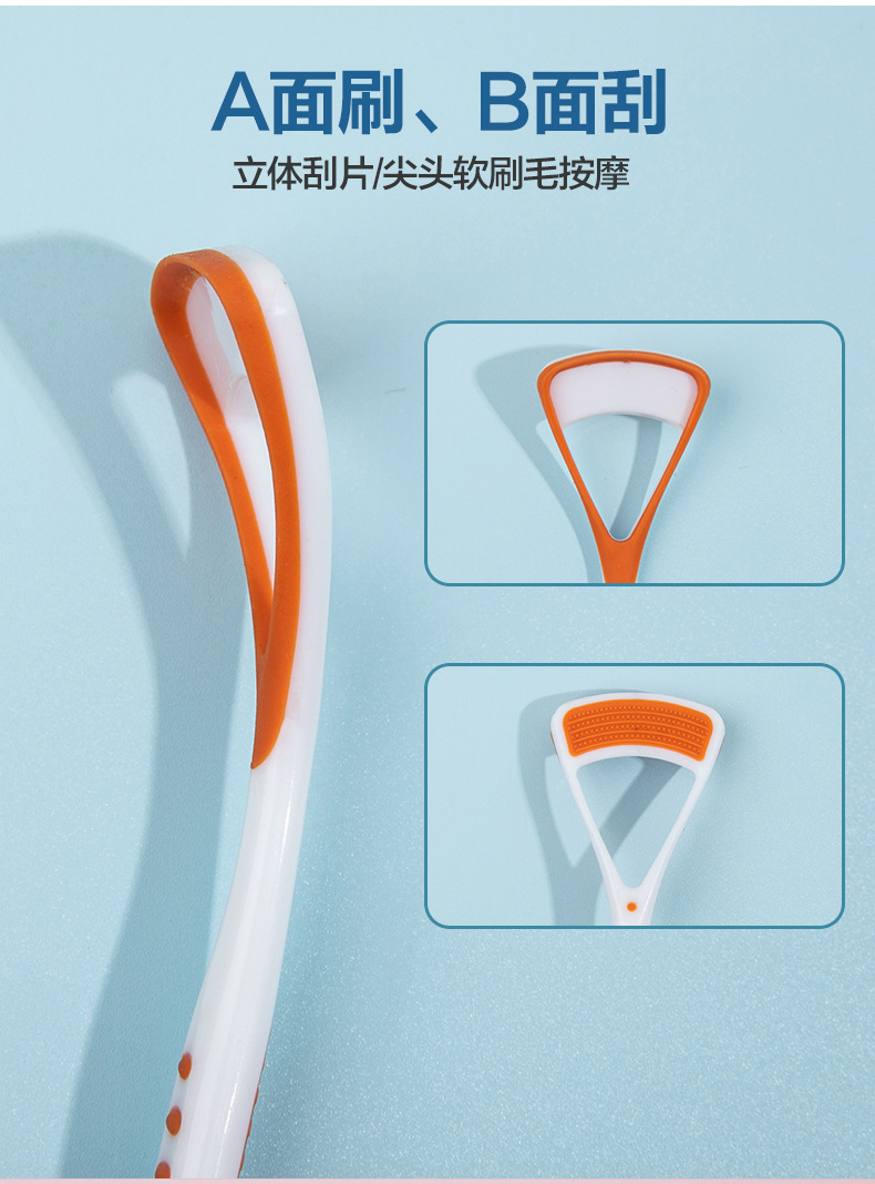 Щетка для чистки языка, двусторонний скребок для языка, инструмент для чистки и удаления налета с языка с мягкой щетиной, два в одном.