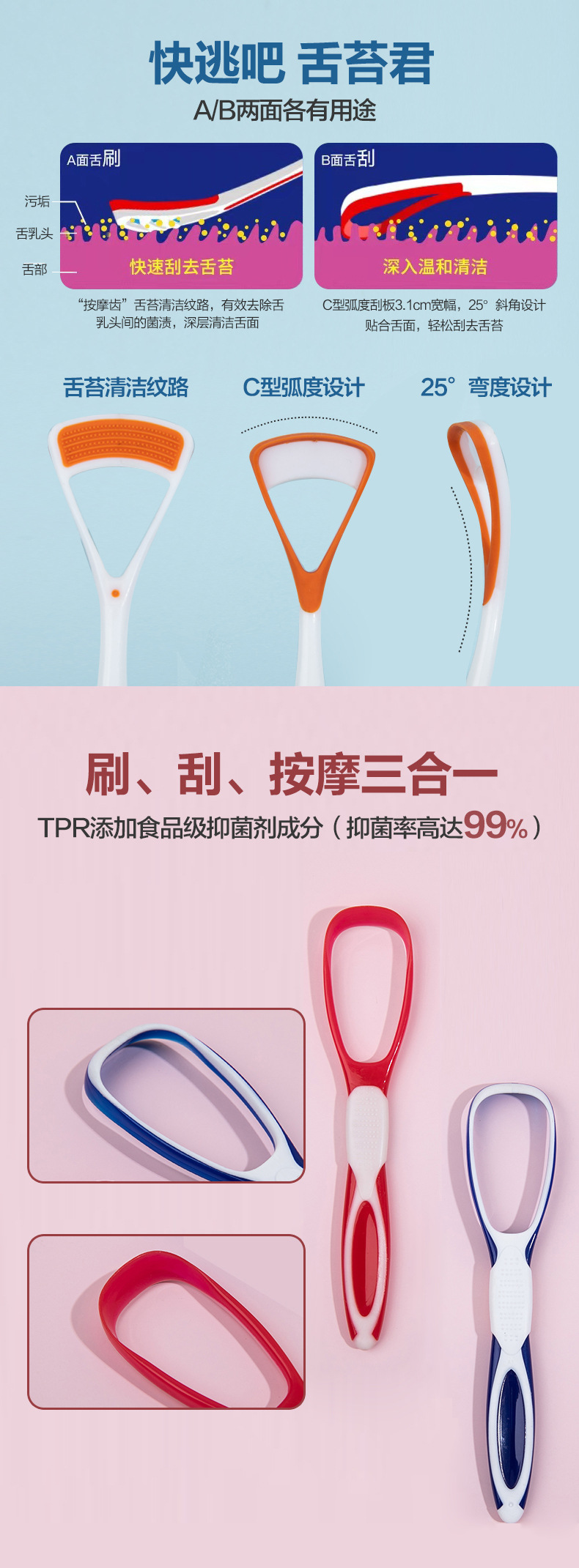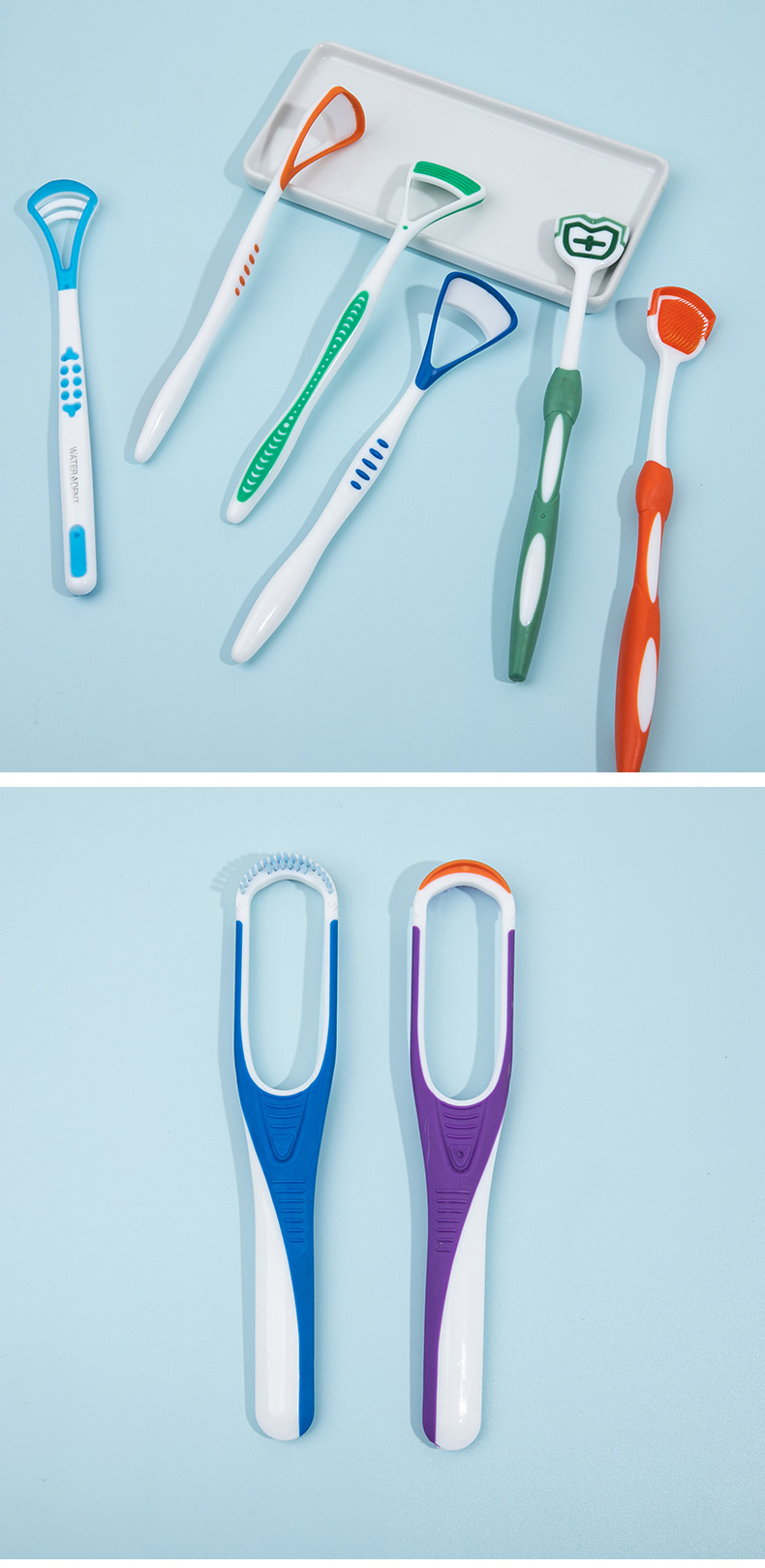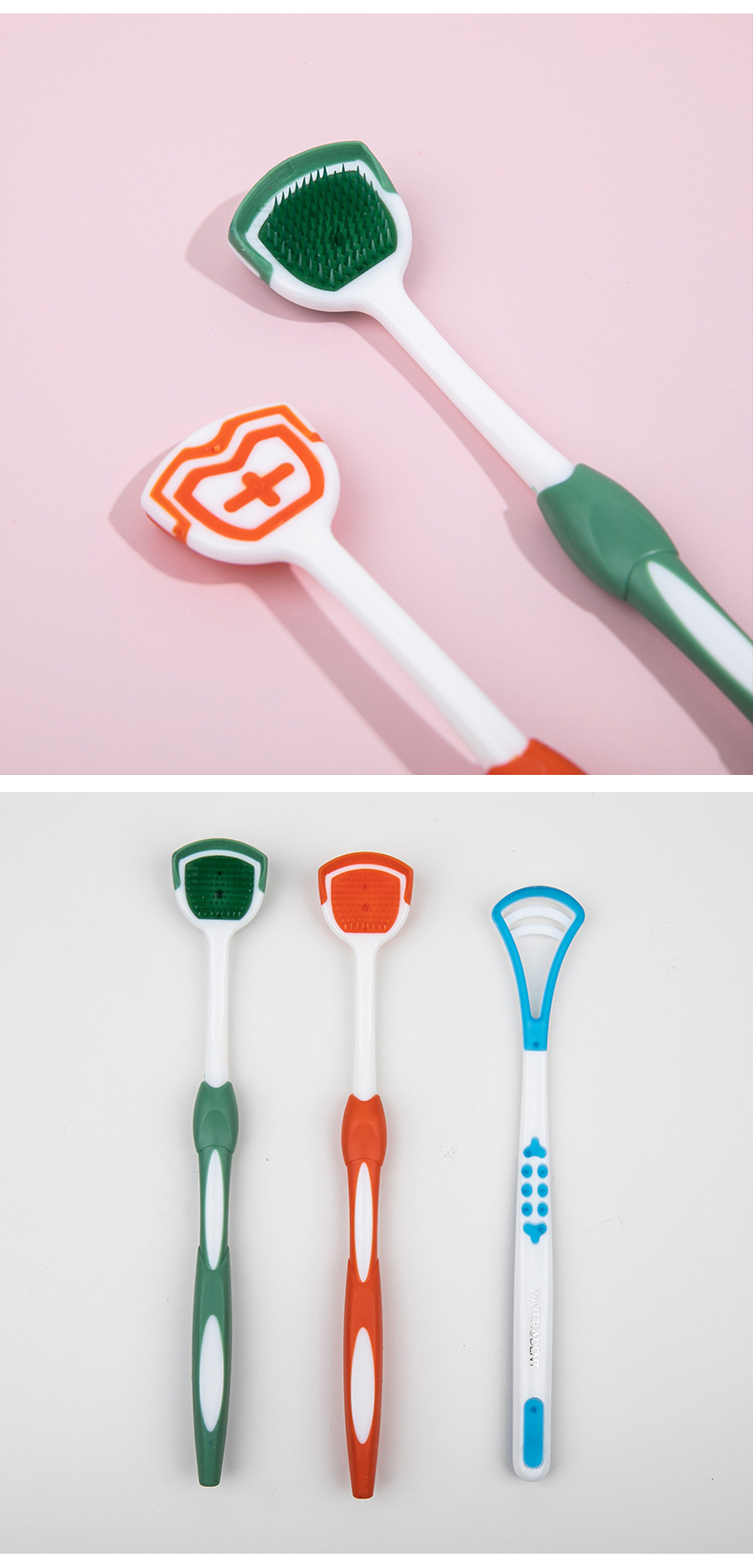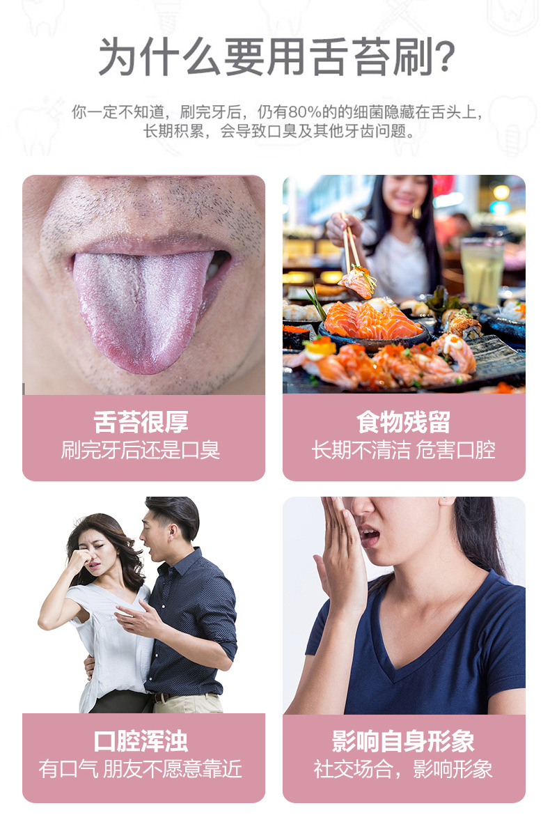Щетка для чистки языка, двусторонний скребок для языка, инструмент для чистки и удаления налета с языка с мягкой щетиной, два в одном.