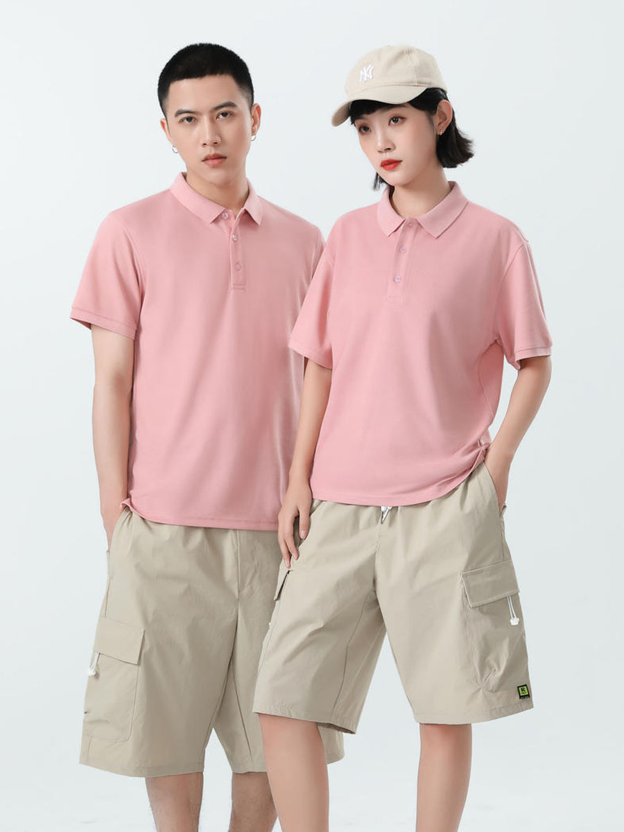 Рубашка-поло с короткими рукавами и лацканами с индивидуальным логотипом 230 г, тяжелая рекламная футболка в индивидуальном стиле, розовая рабочая одежда с вышивкой