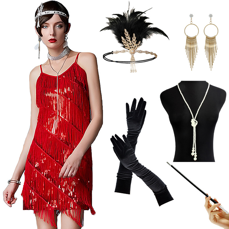Платье большого размера Getsby 1920S Бусы с кисточками V-образный ремень с ремешком ретро вечернее платье с блестками латинский танец