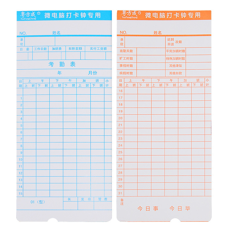 一包93张 双面考勤卡纸 材质300g白卡纸