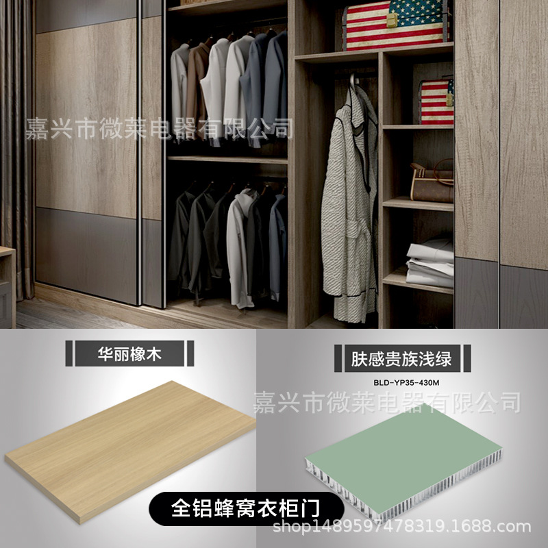 嘉兴微莱电器有限公司 ,不断创新,新品不断,全心致力居家全屋智装全套产品,今年推出铝合金蜂窝柜门板,衣柜,厨柜,阳台柜,客厅柜,门板,本产品壁厚1mm,蜂窝心4*4,整体厚度有18mm-22mm-25mm,抗撞击,不变形,防火防水防潮耐腐蚀,多种颜色可选,本产品目前定价是铝锭在23000一吨价格,产品价格跟着市场价而变动,请在购买前,先咨询客服,给您比较合适的价格,不咨询下单不于发货,支持先看样,满意再下单,谢谢理解。。。。 大件建材产品不包邮发物流或者客户指定物流发货