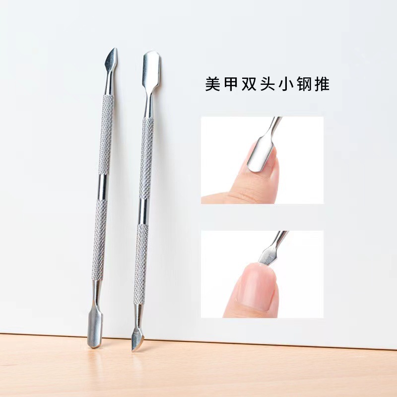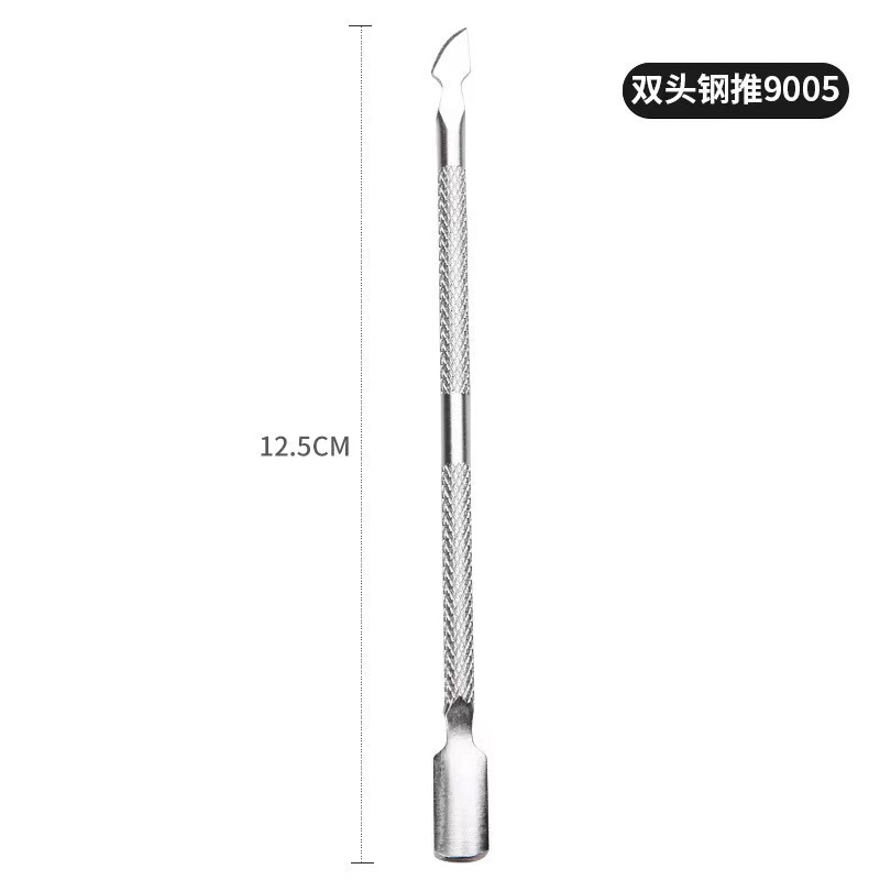 Стальной толчок для дизайна ногтей из нержавеющей стали для удаления омертвевшей кожи с двойной головкой небольшой стальной толчок двойного назначения для удаления лака для ногтей строгание инструмент для дизайна ногтей