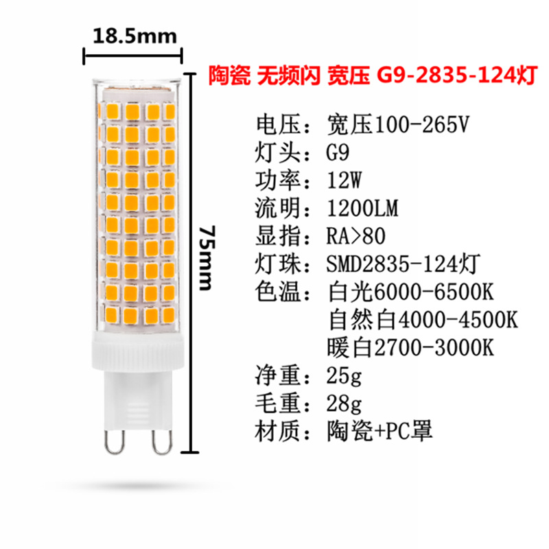 Широковольтная светодиодная лампа G9-2835-124 (AC100-240V) с керамическим корпусом, замена галогенной лампы, высоковольтная светодиодная лампа.
