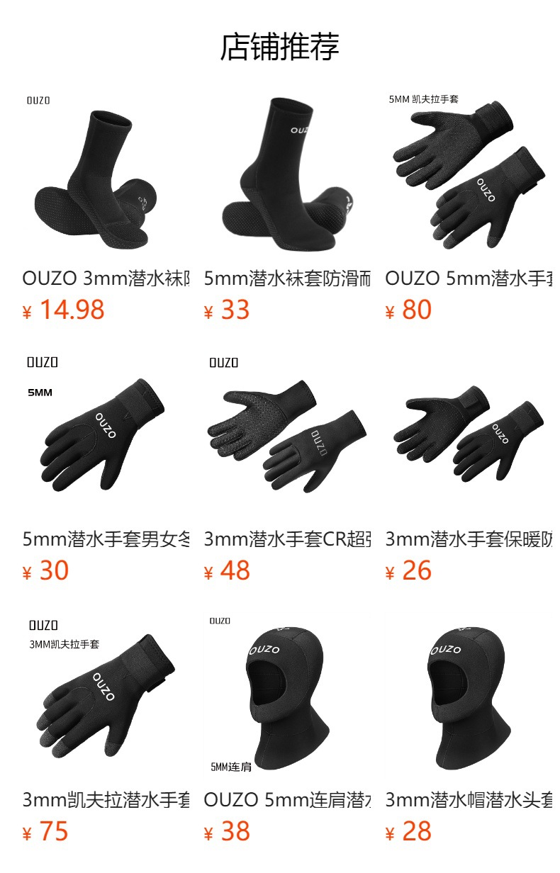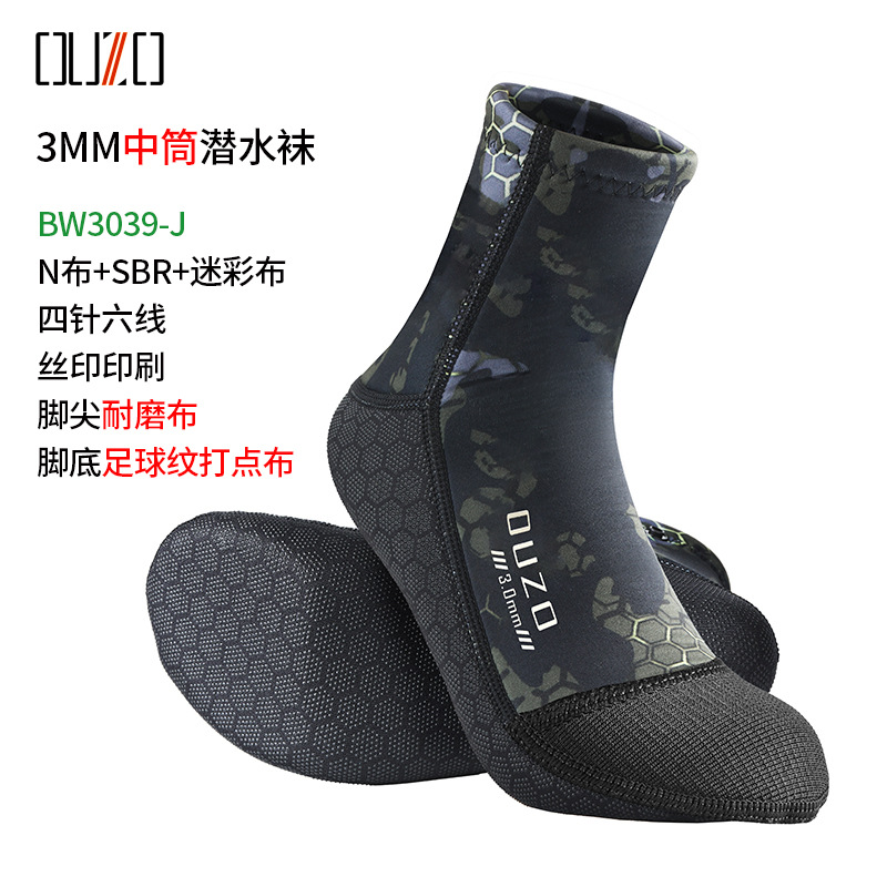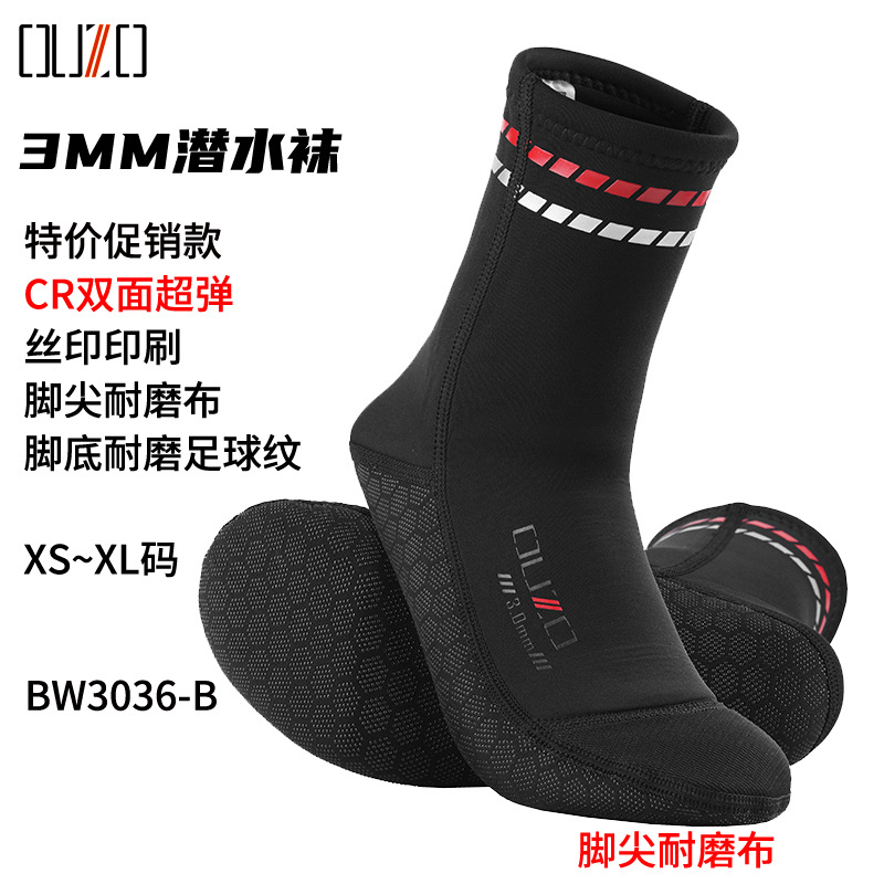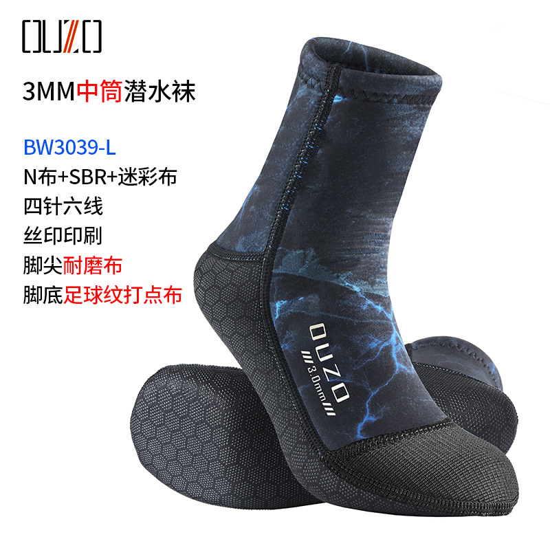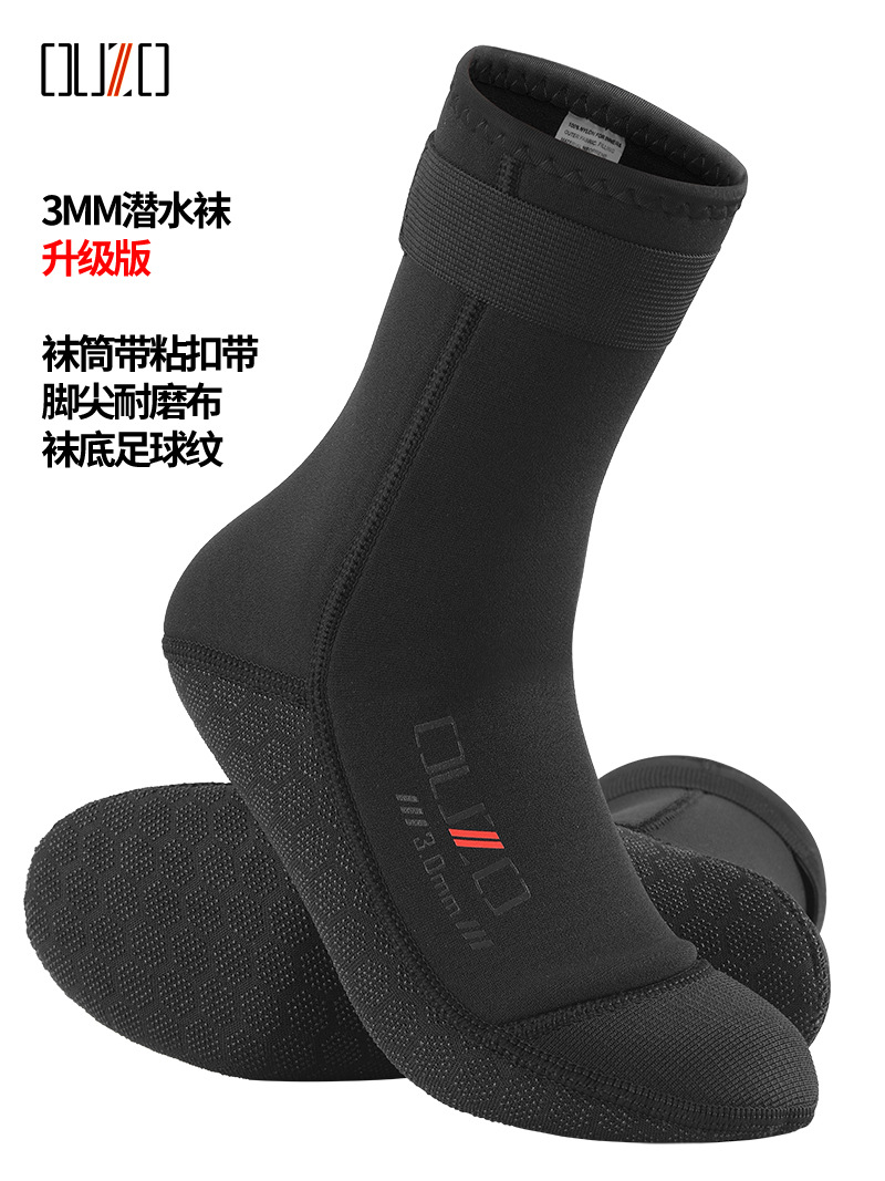 3mm潜水袜子OUZO防滑耐磨沙滩袜 加厚保暖冬泳成人冲浪涉水浮潜袜袜