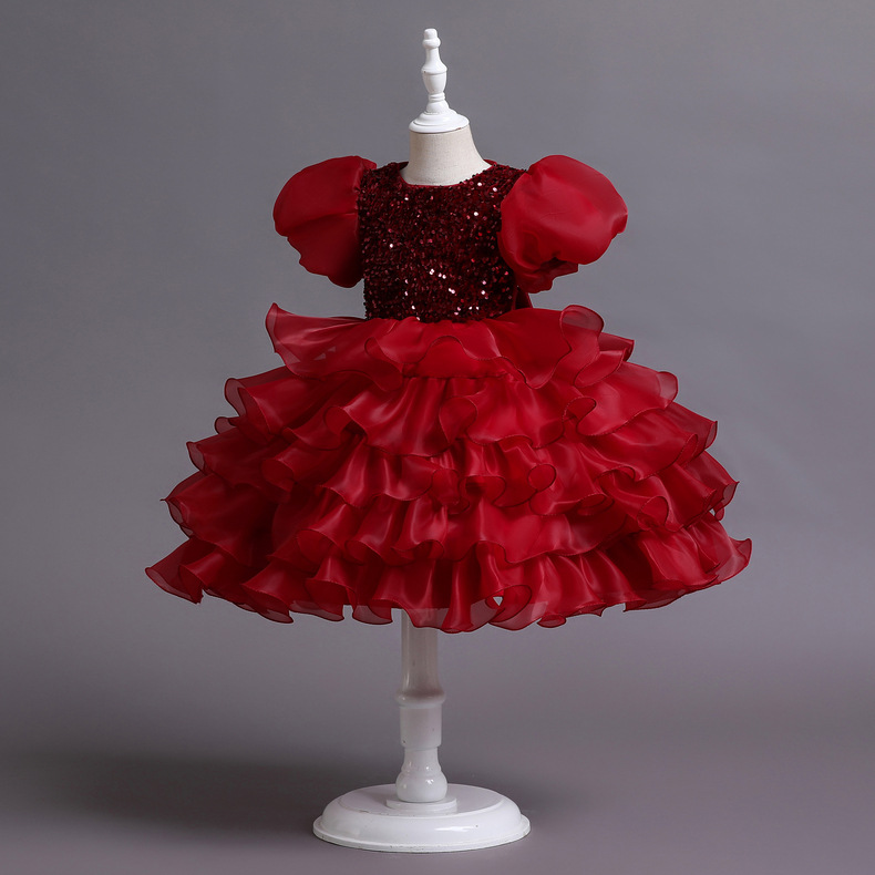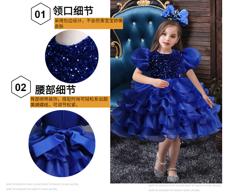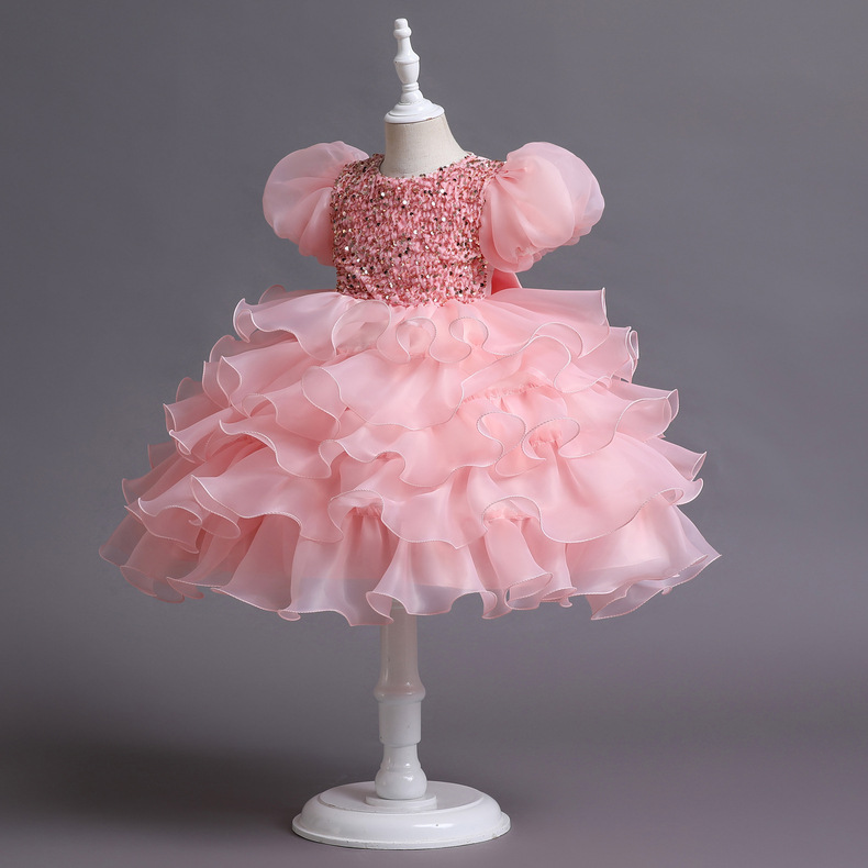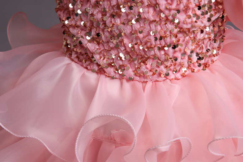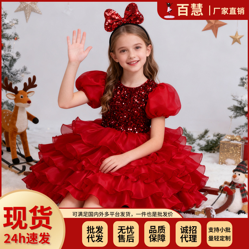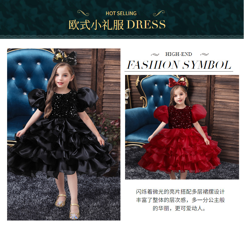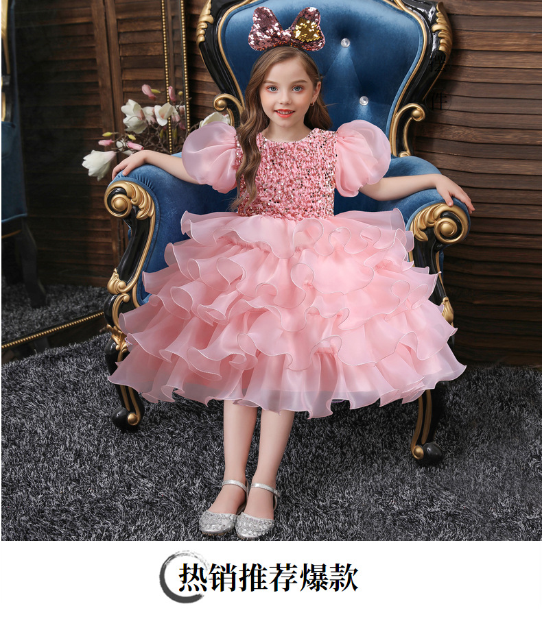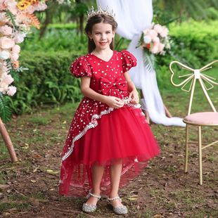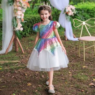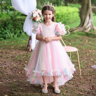 Европейское и американское детское пышное сетчатое платье принцессы с пышными рукавами и блестками, свадебное платье, рождественская одежда для подиума, одежда для выступлений