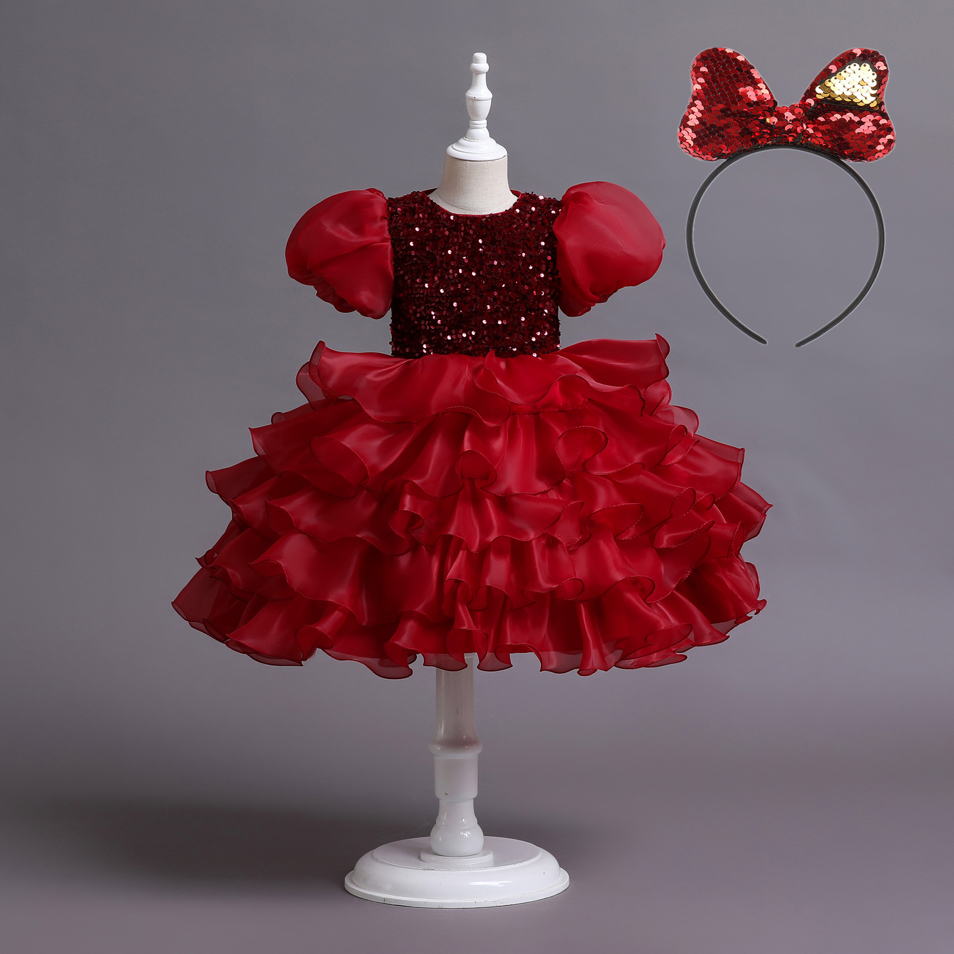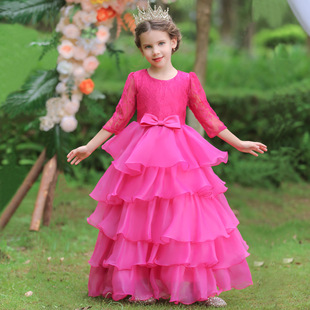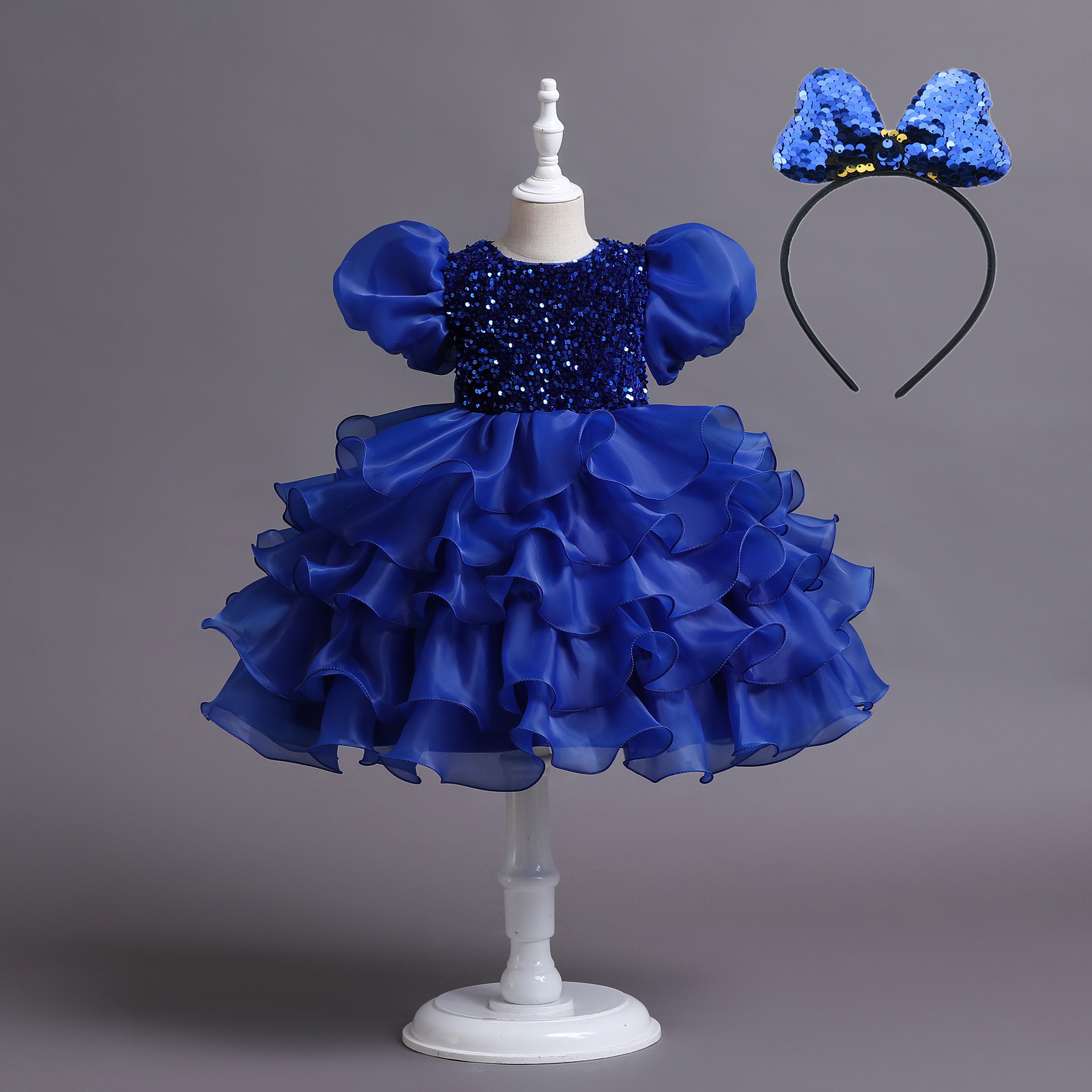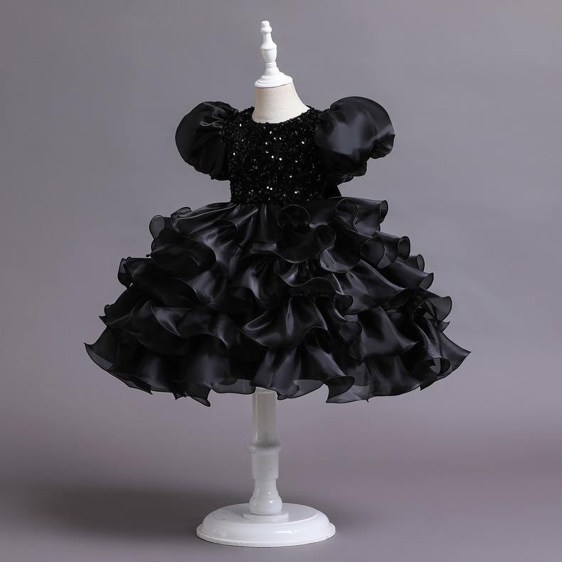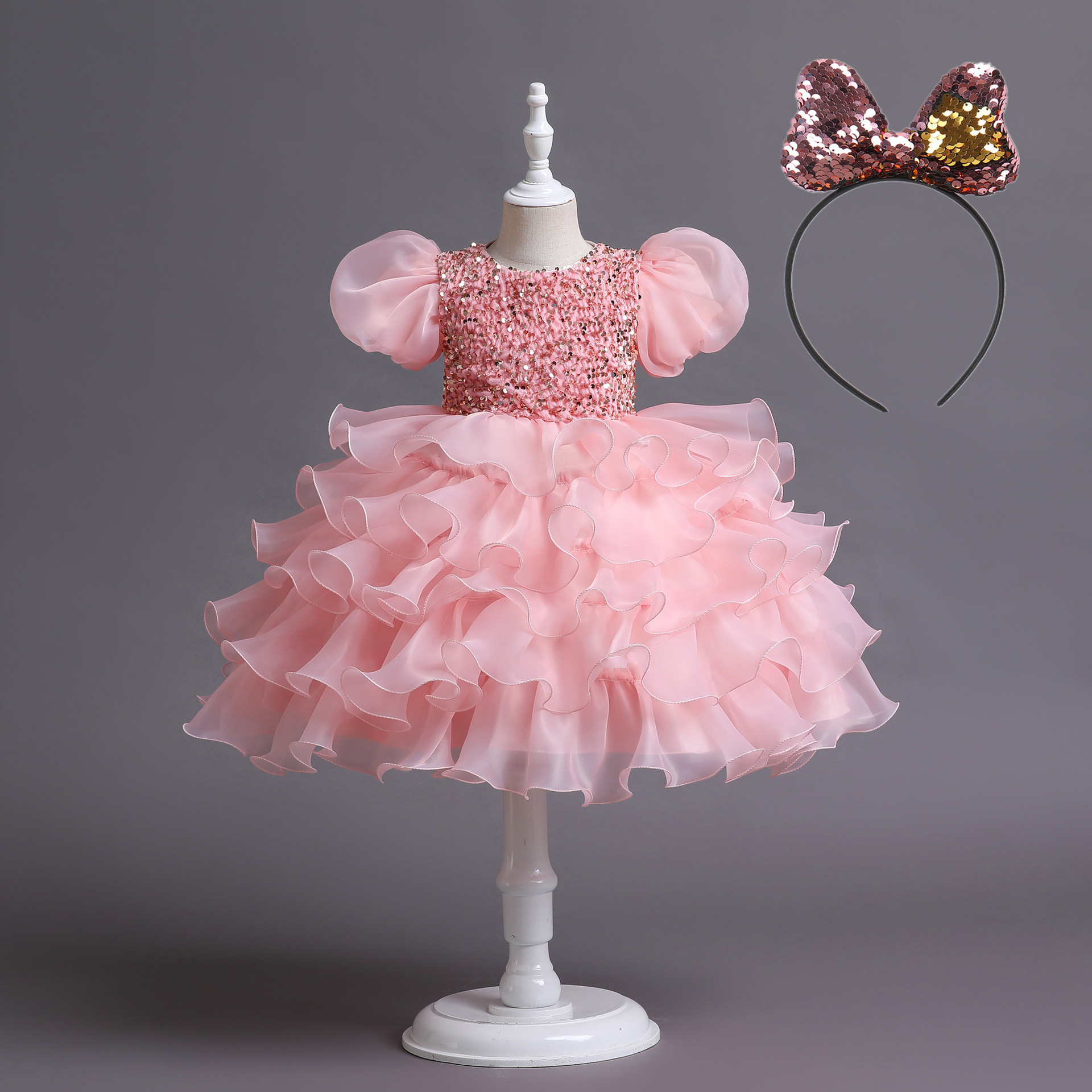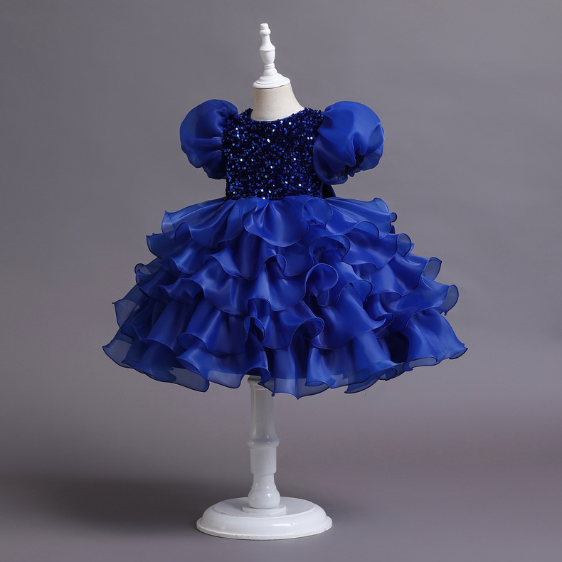 Европейское и американское детское пышное сетчатое платье принцессы с пышными рукавами и блестками, свадебное платье, рождественская одежда для подиума, одежда для выступлений