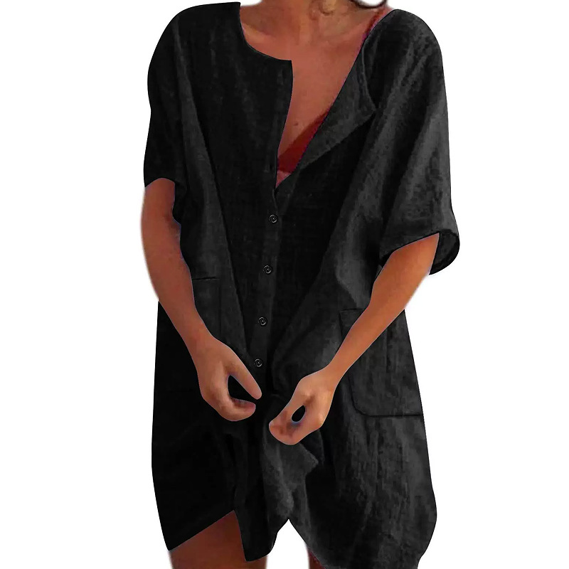 Прямые продажи с фабрики, трансграничная внешняя торговля, европейская и американская одежда, рубашки, разноцветные свободные однотонные рубашки средней длины с короткими рукавами для женщин