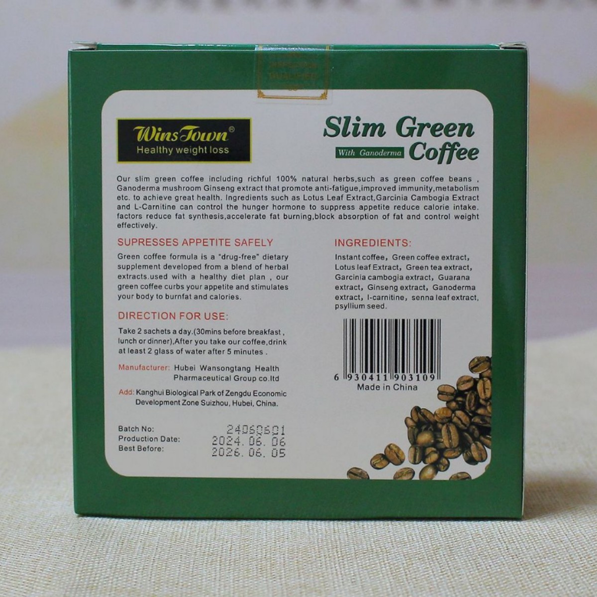 Кофе для похудения Wins Town Slim Green Coffee с ганодермой