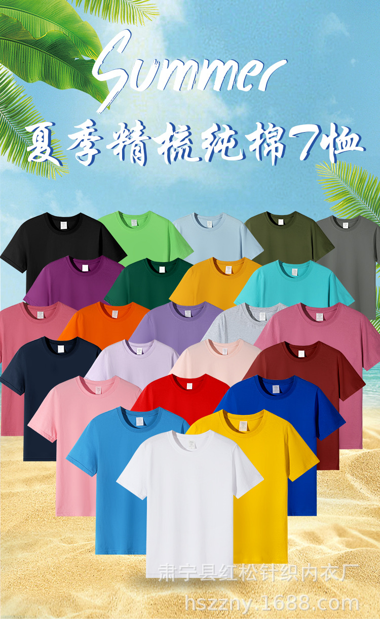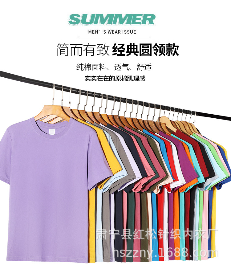 Мужская футболка из чесаного хлопка, 180 г, из чистого хлопка, с круглым вырезом, с короткими рукавами, однотонная, с половиной рукавов, легкая версия, трансграничная модная брендовая футболка
