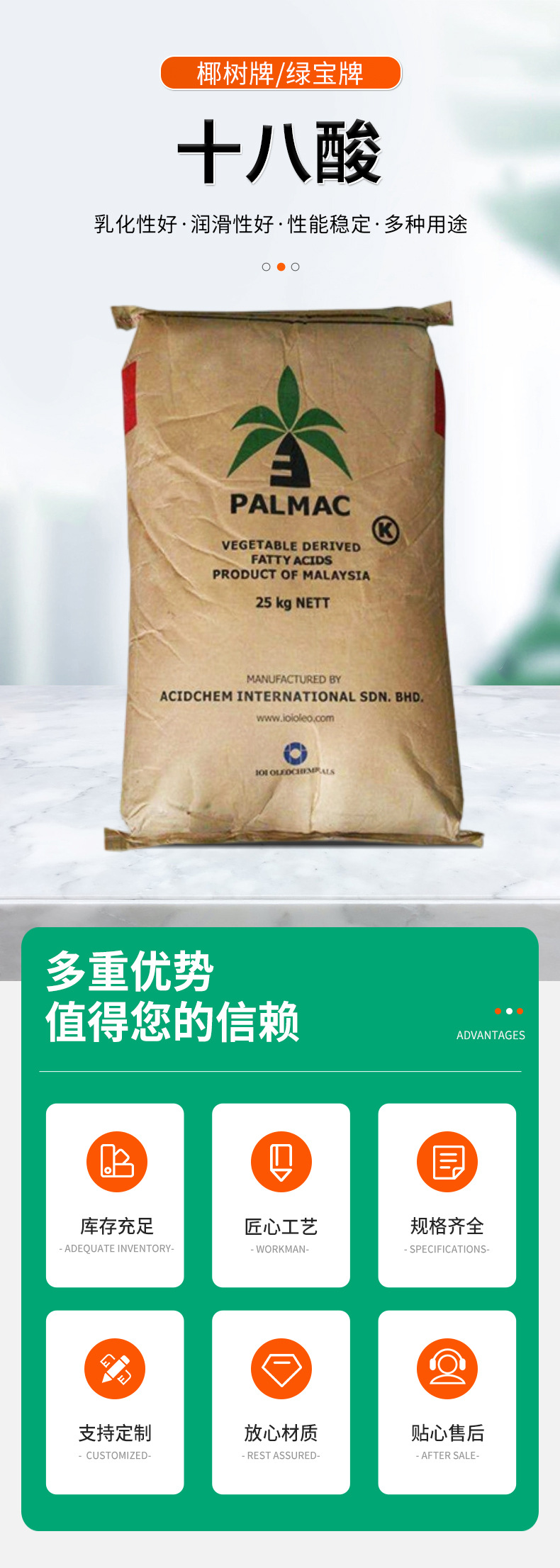 Индонезийская кокосовая стеариновая кислота Green Treasure 1801 (октадекановая кислота), косметический сорт, полировочный агент, высокое содержание, высокая чистота