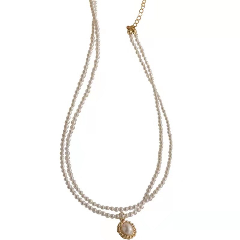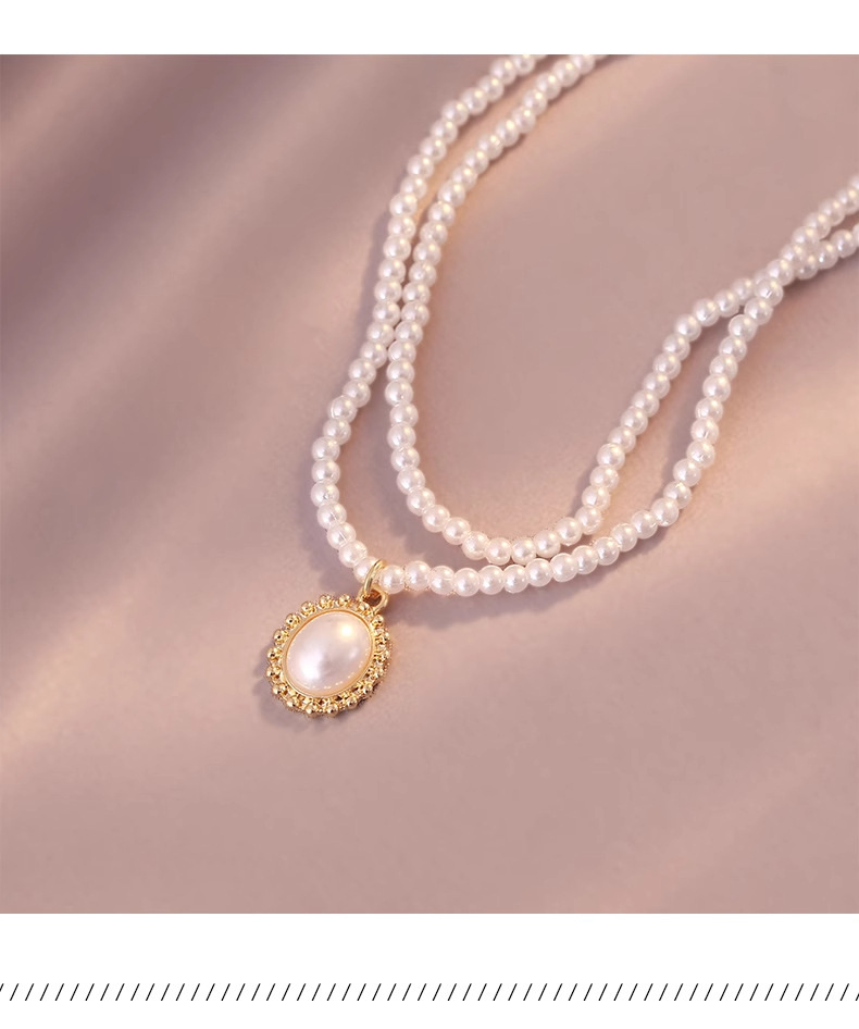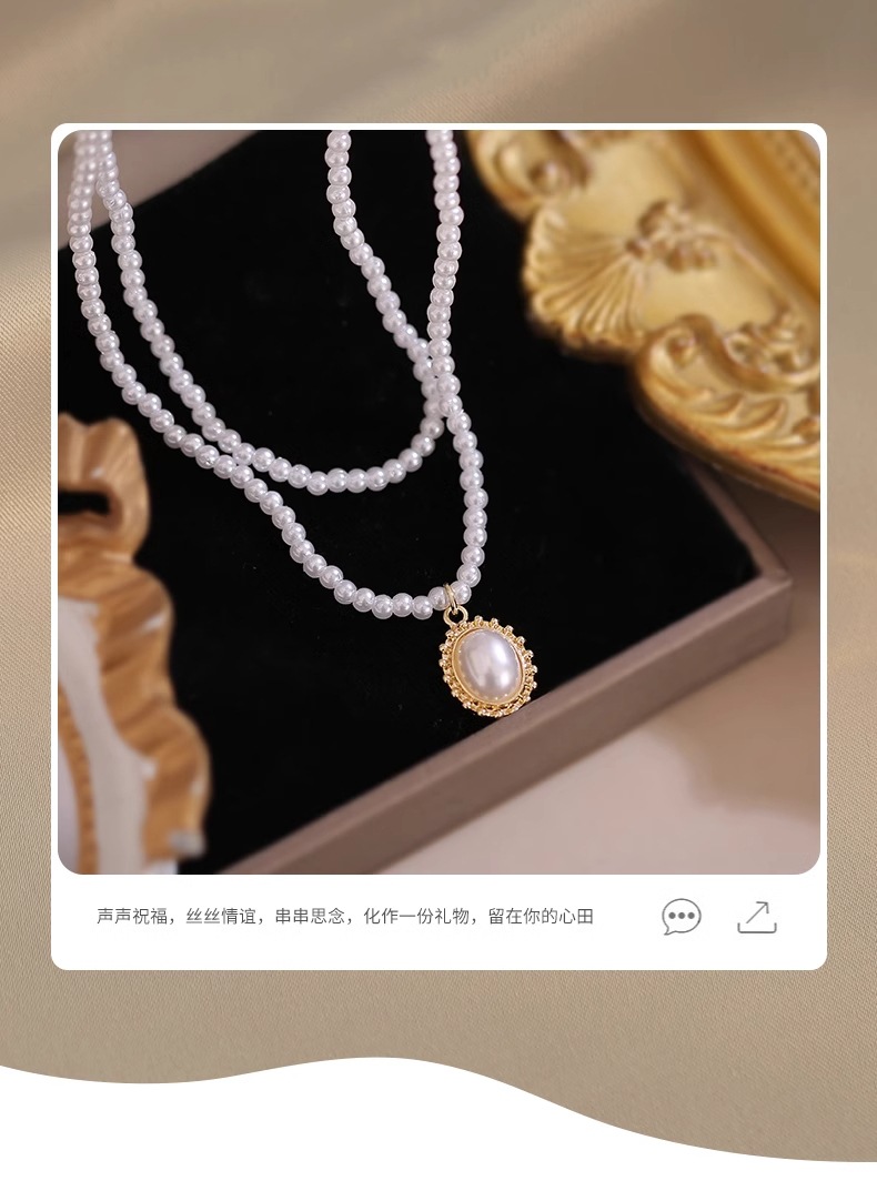 Жемчужное ожерелье легкое роскошное чувство дизайна ниши корейское ретро двойная цепочка ключицы премиум-класса 2025 новый женский аксессуар
