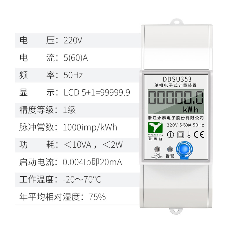 Однофазный двухсекционный рельсовый измеритель мощности и данных Yongtailong с ЖК-дисплеем, 220В, 60А, высокоточный.