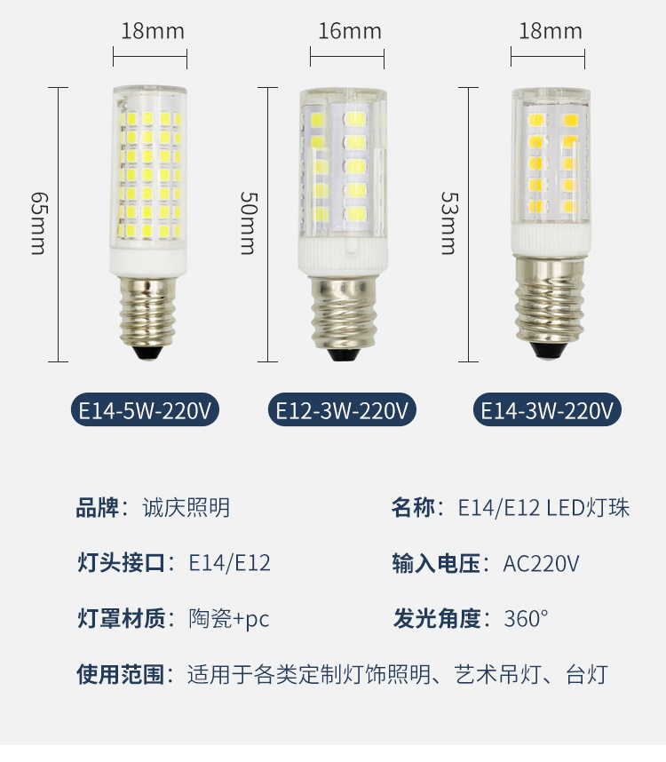 Светодиодная лампа-кукуруза E14, керамическая, высокой яркости, 110/220В, лампа E12 для холодильника, бытовая лампа для люстры