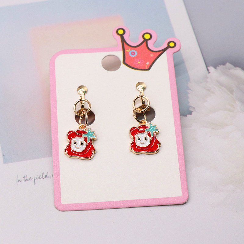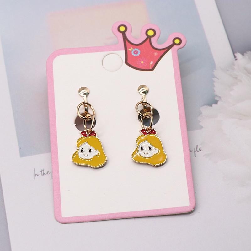 Детский зажим для ушей без отверстий для ушей Принцесса Маленькая девочка поддельные серьги милый мультфильм сплав кулон анти-боль серьги
