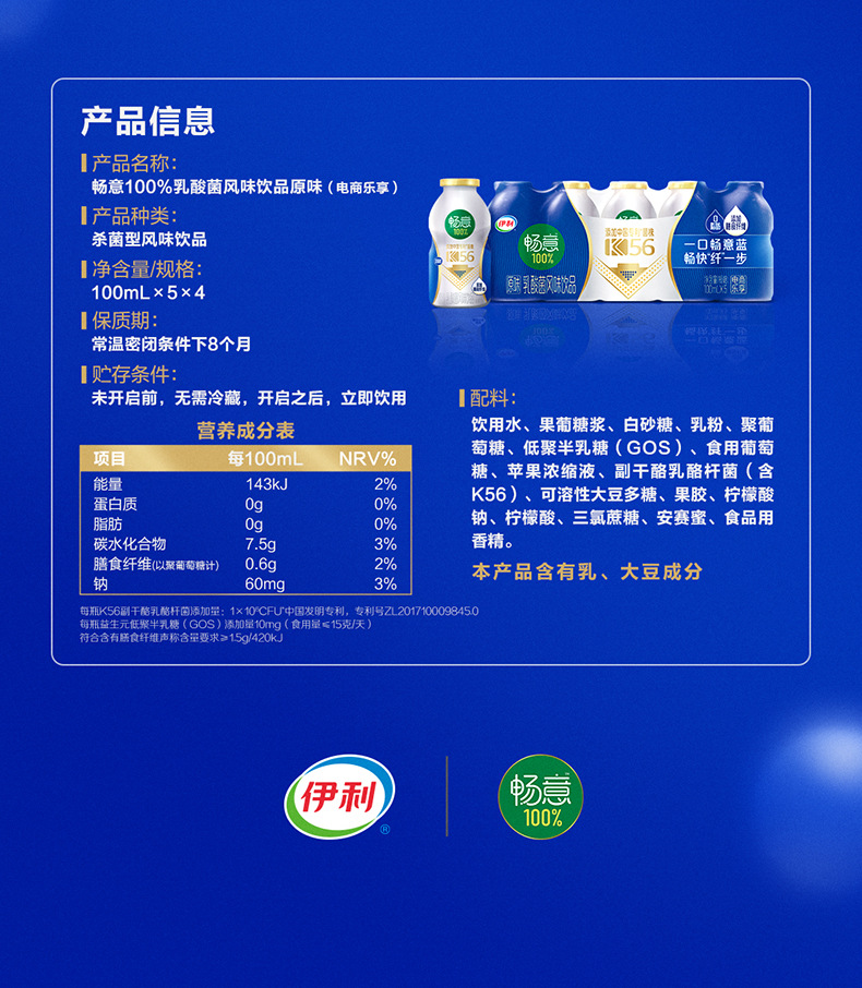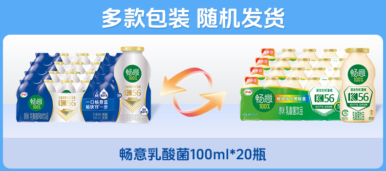 В марте в продаже напиток Yili Changyi Lactobacillus 100% оригинального вкуса, 100 мл*20 бутылок/30 бутылок, доступен в нескольких объемах.