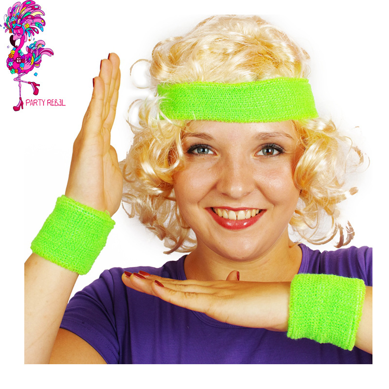本款产品适合 80 年代 角色扮演的完美配件,不妨搭配一套由头带和两条毛巾布汗带组成的运动带套装,为您的 80 年代服装锦上添花。
