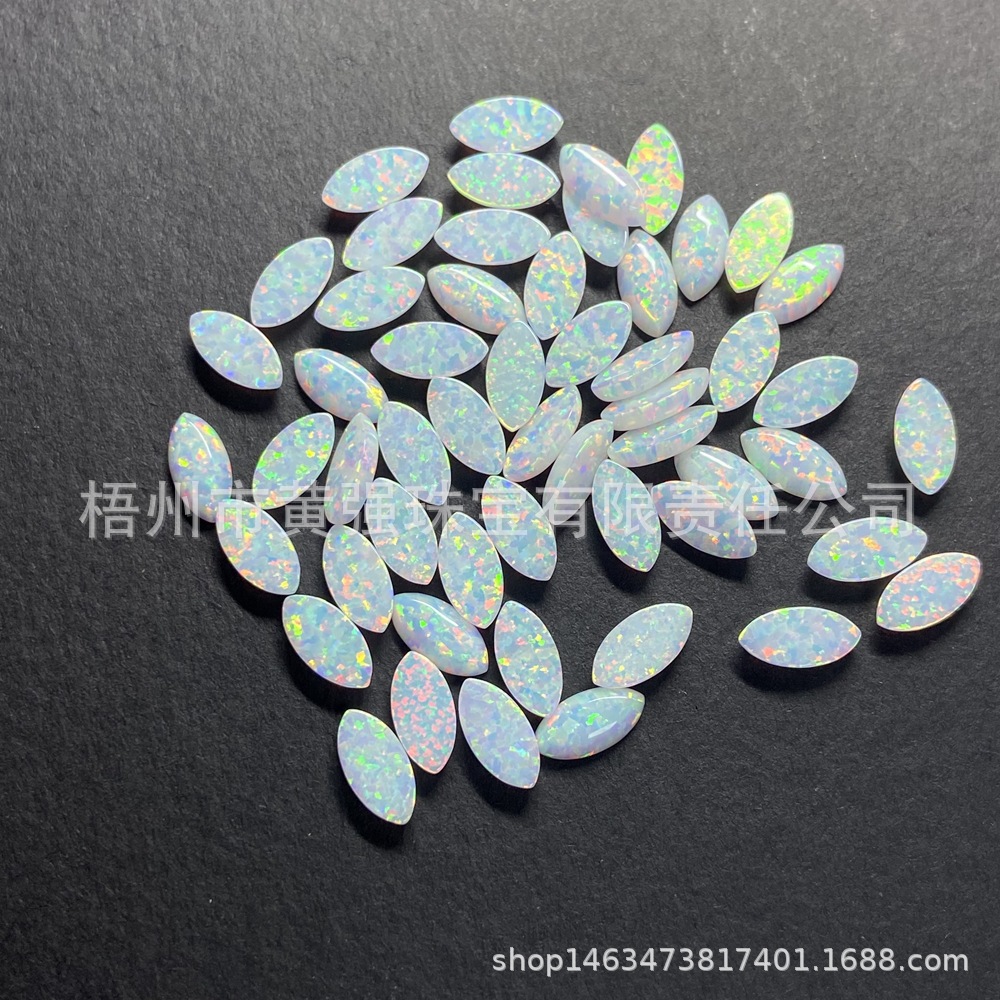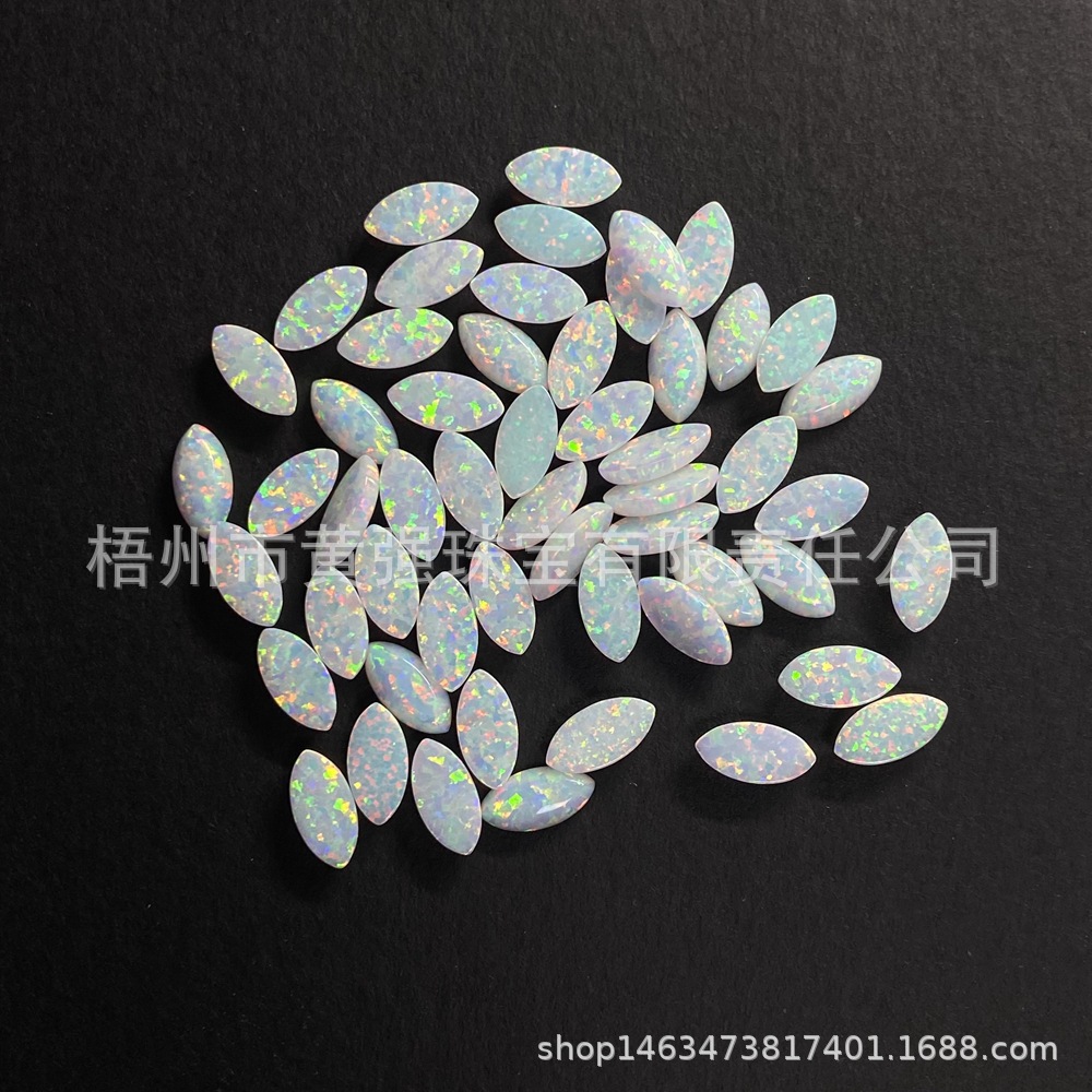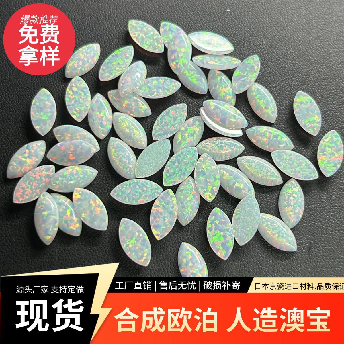 合成白色澳宝旦形平底素面椭圆人造蓝色欧珀裸石蛋白石戒面欧泊石.
