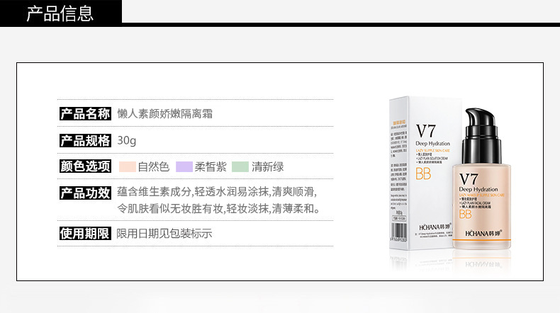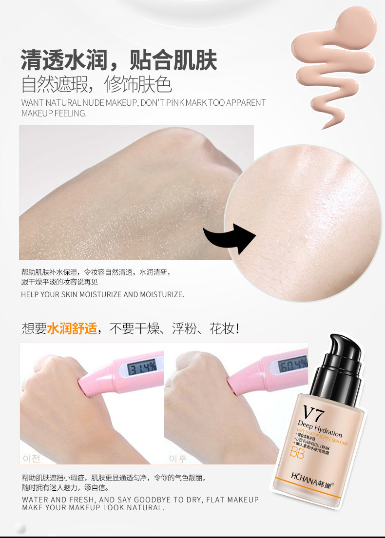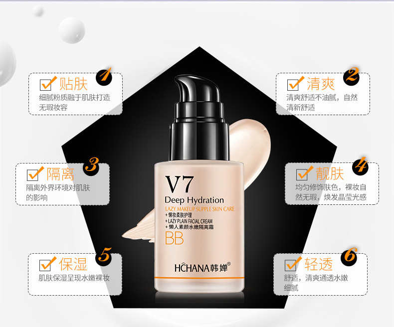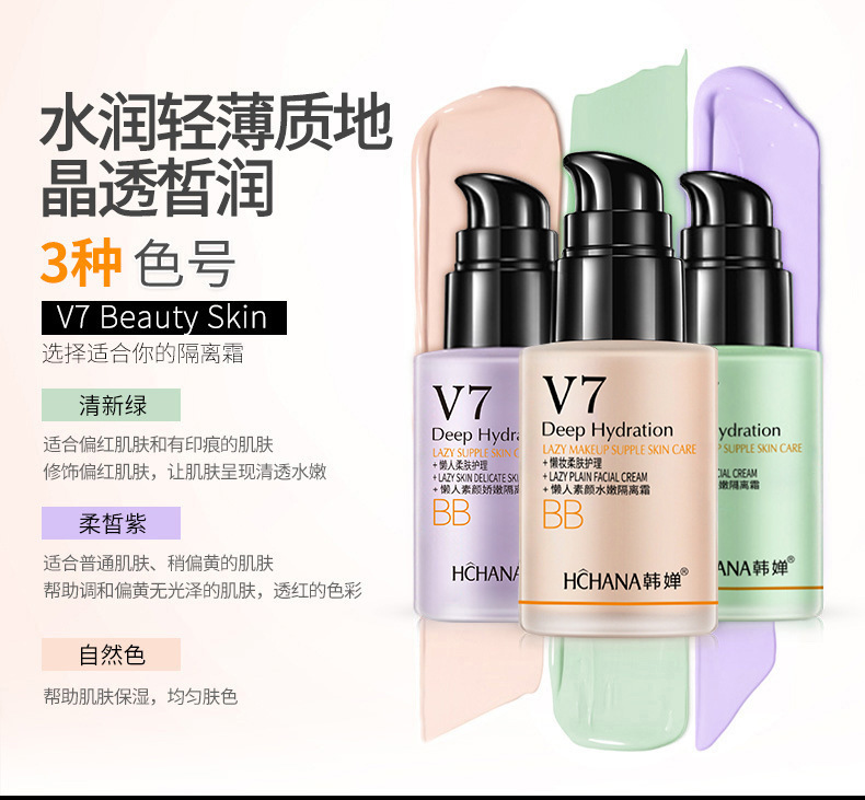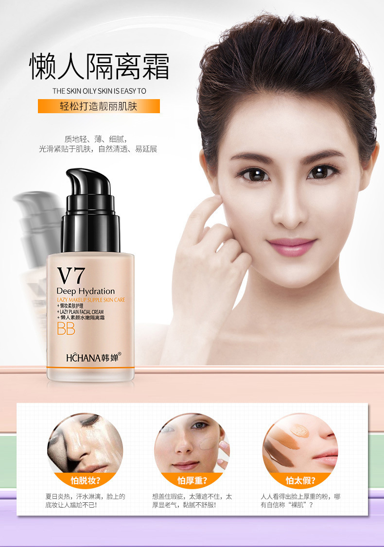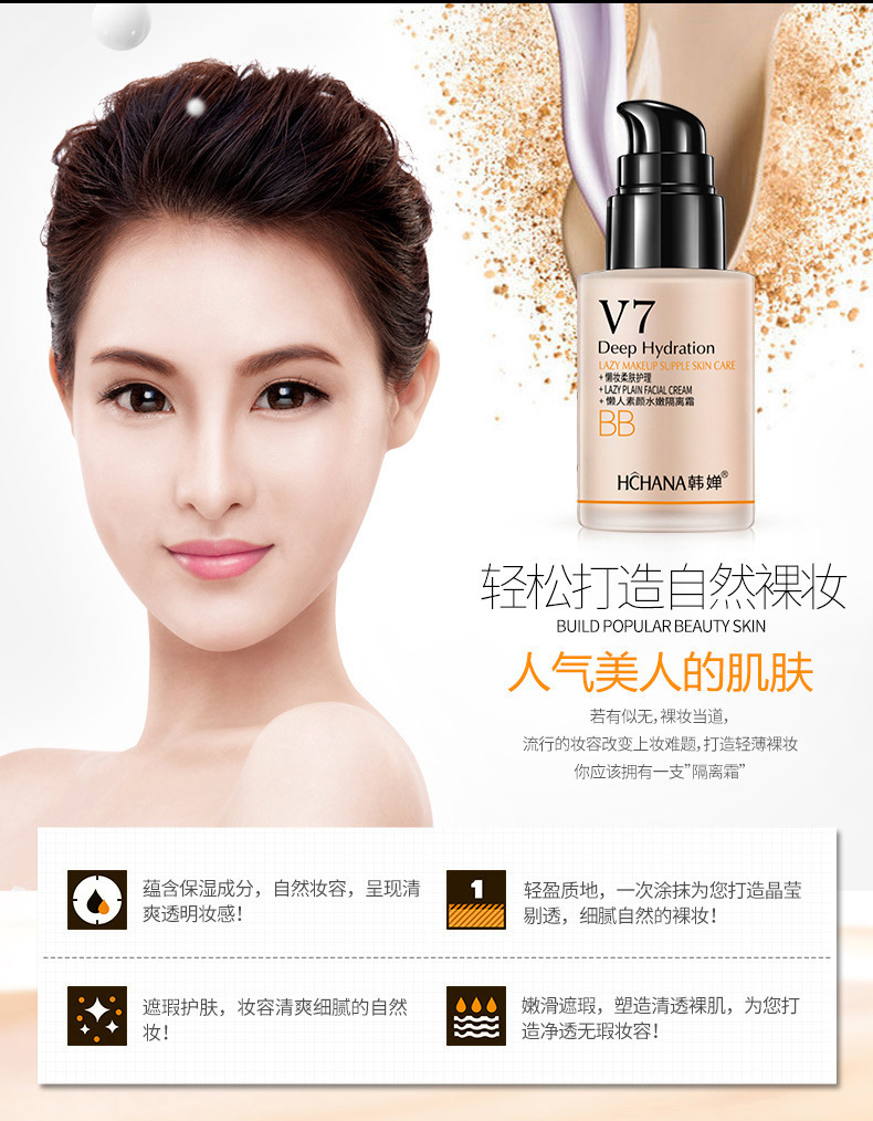 Han Chan V7 Изолирующий крем Водный нежный увлажняющий простой крем для ленивых людей Изолирующий консилер Основа Жидкий цвет кожи BB крем для макияжа
