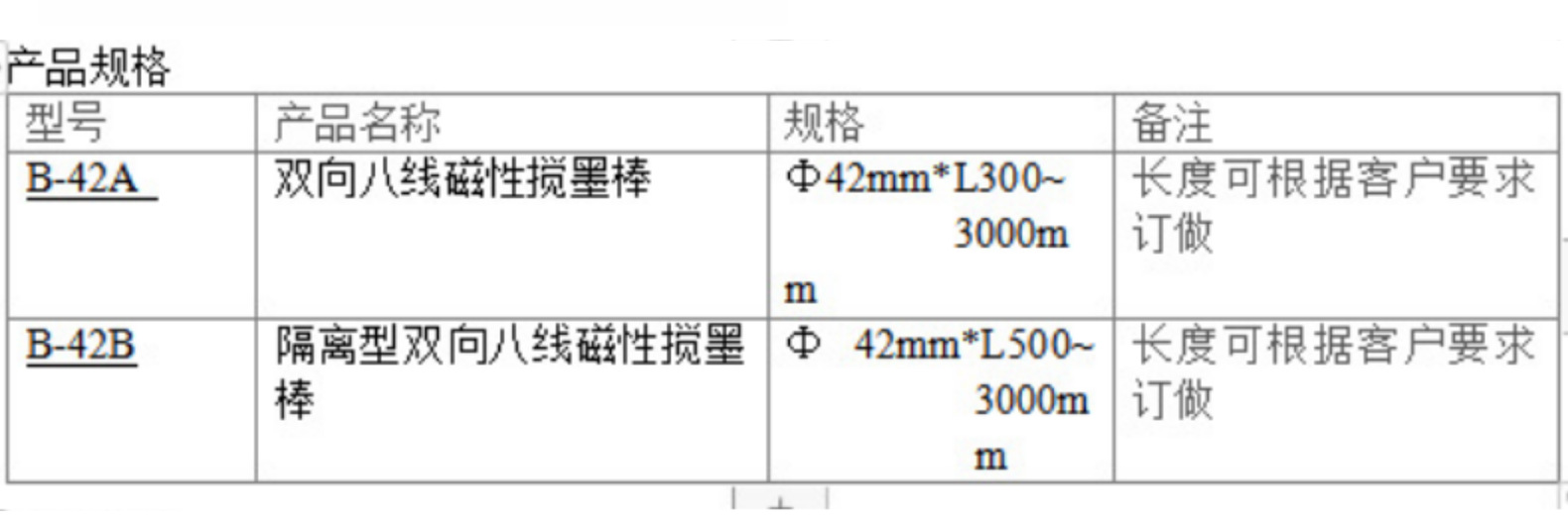 Φ42*L300mm; Φ42*L400mm; Φ42*L500mm; Φ42*L600mm; Φ42*L700mm; Φ42*L800mm; Φ42*L900mm; Φ42*L1000mm; Φ42*L1100mm; Φ42*1200mm; Φ42*L1300mm; Φ42*1400mm