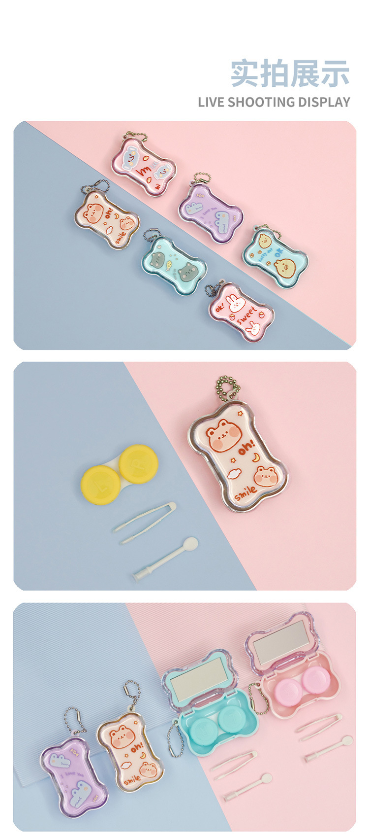 17679101-Bone линзы контактные линзы случае-смешанный цвет; 17679103-Кость с футляром для контактных линз с зеркалом