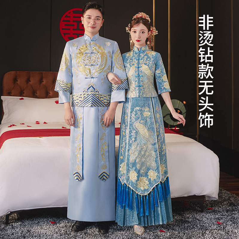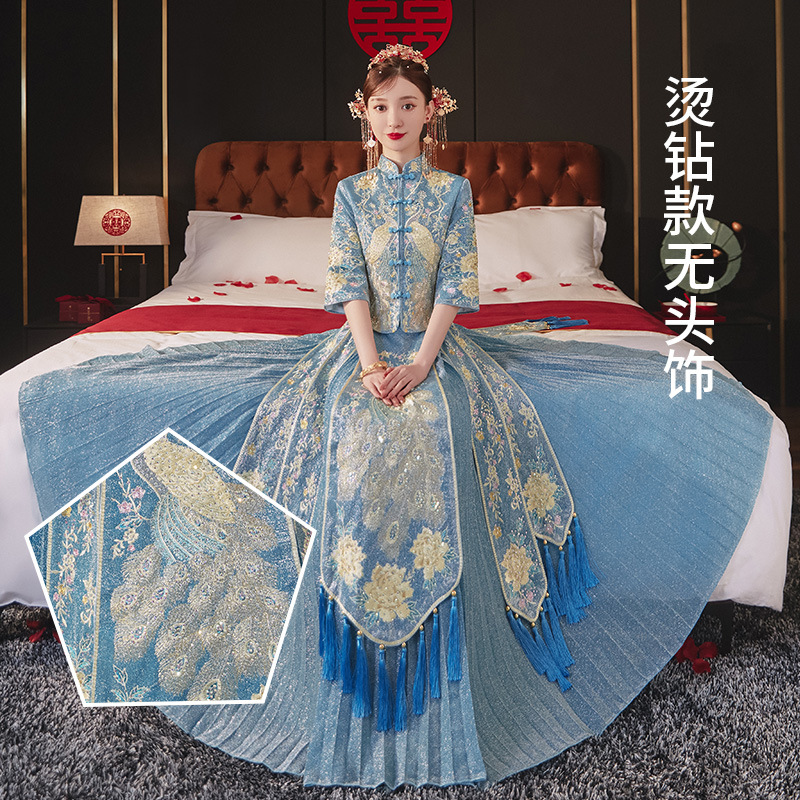 Свадебное платье Xiuhe 2026: летнее, элитное, синее, с драконом и фениксом, новый стиль для невесты.