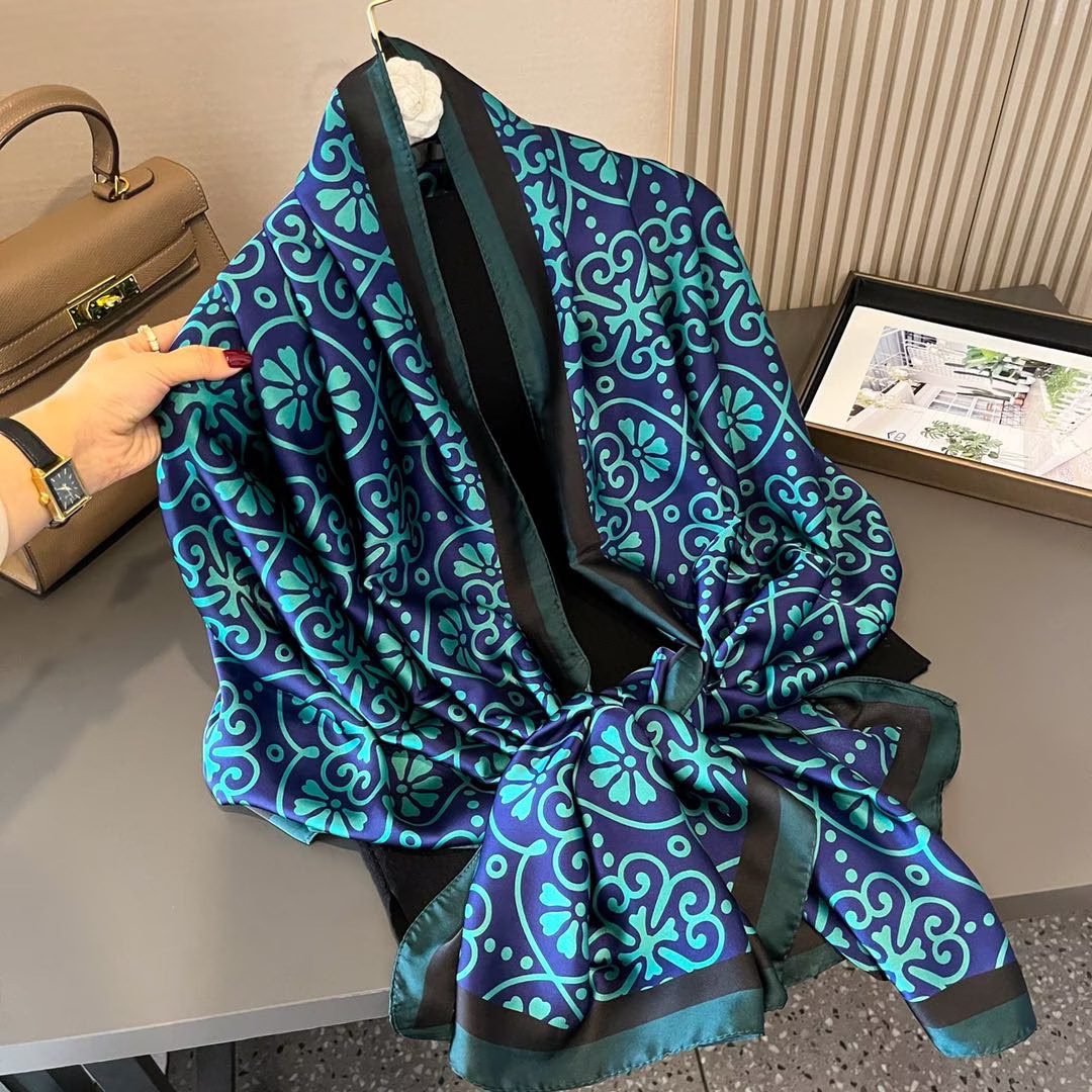 Новый летний шелковый платок 2025 года для женщин, длинная тонкая шаль с брокадным принтом, декоративный платок, пляжное полотенце