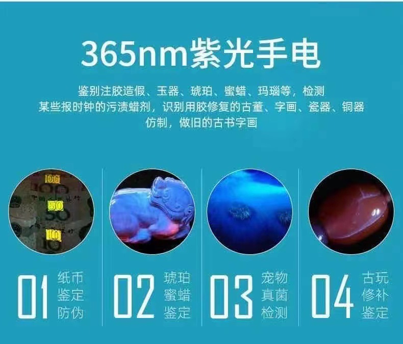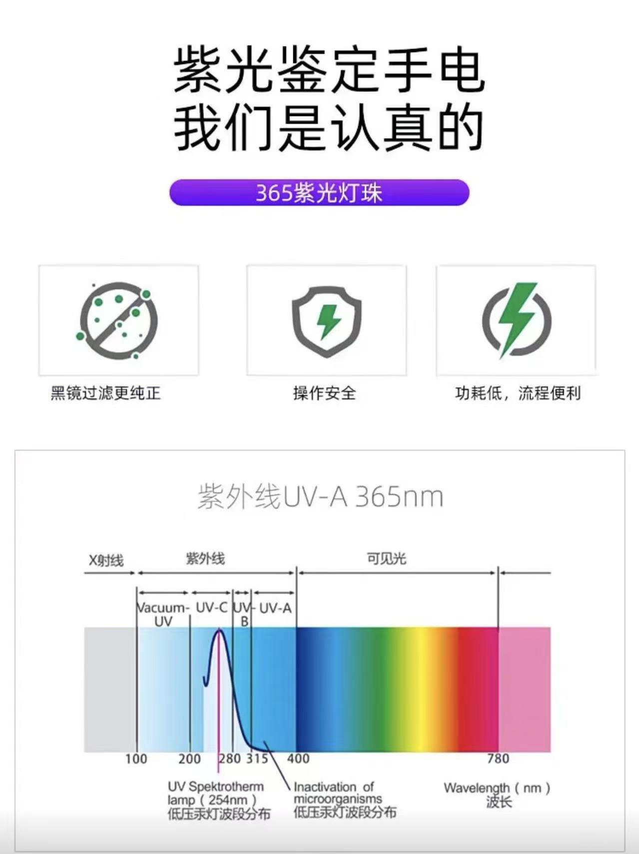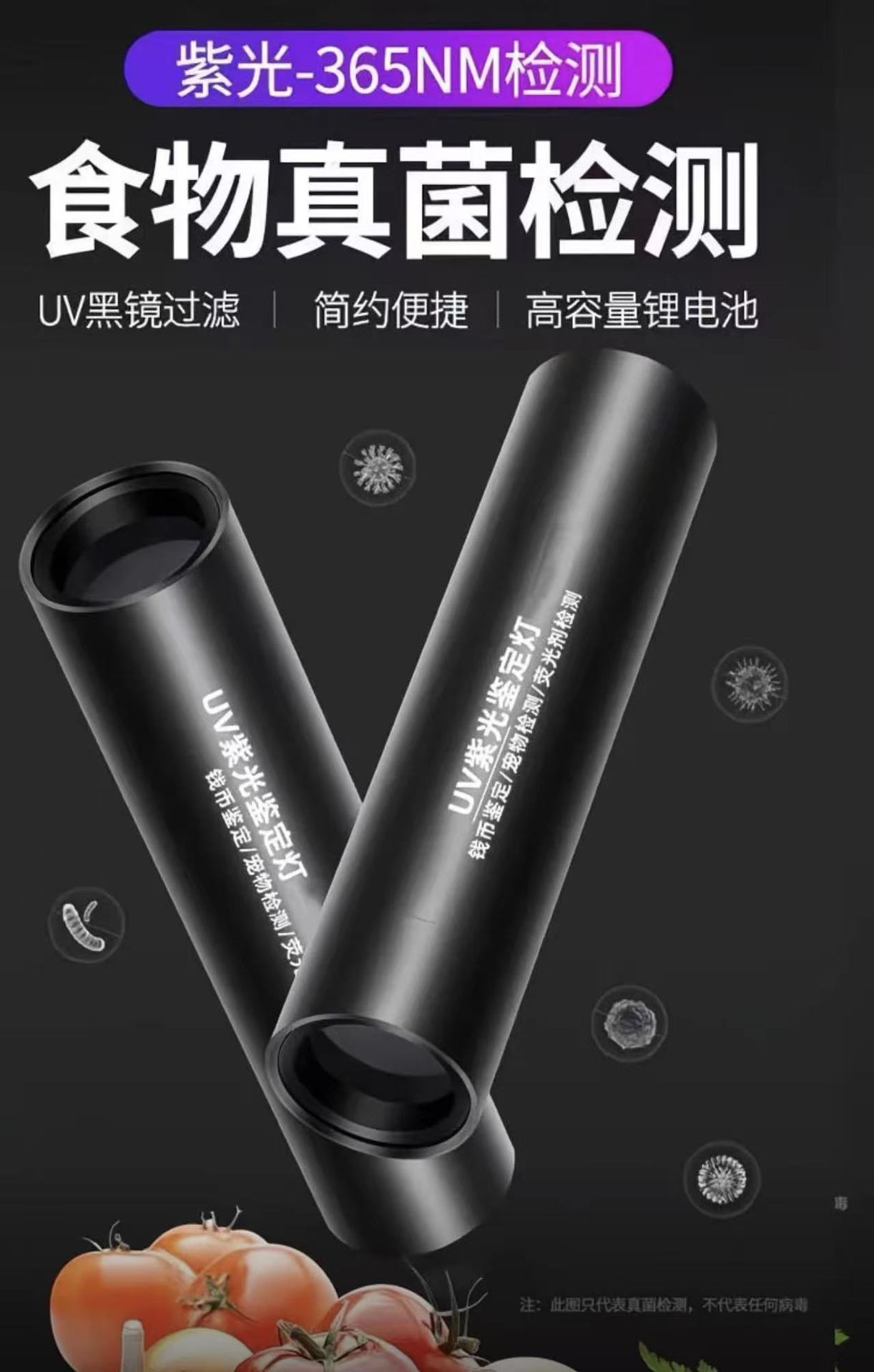 Фонарик с фиолетовым светом 365UV для обнаружения остатков пестицидов в овощах, проверки подлинности денег, работы с дизайном ногтей, работы с нефритом и лампа Вуда для обнаружения лиша.