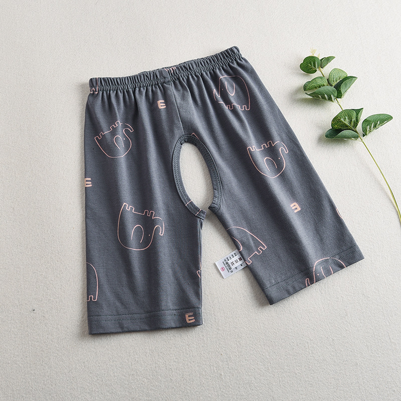 Детские открытые промежностные брюки сплошной цвет хлопчатобумажной сетки тонкий детский семиочковый пижаму брюки кондиционер брюки летние свободные и дышащие