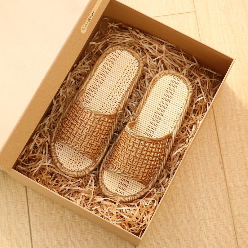 Бамбуковое плетение из ротанга трава Летний Крытый пол пара соломенный коврик тапочки с мягким дном утолщенные впитывающие пот дышащие сандалии и тапочки оптом для мужчин
