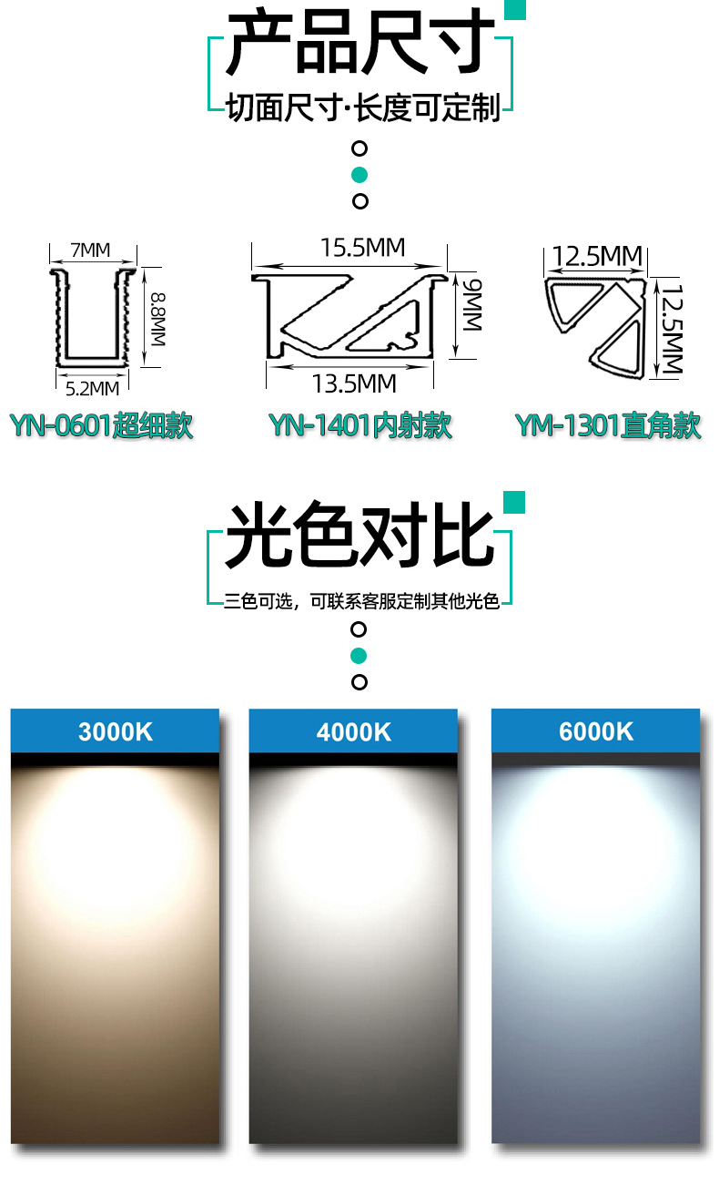 3000K теплый свет; 4000K нейтральный свет; 6000 К белый свет