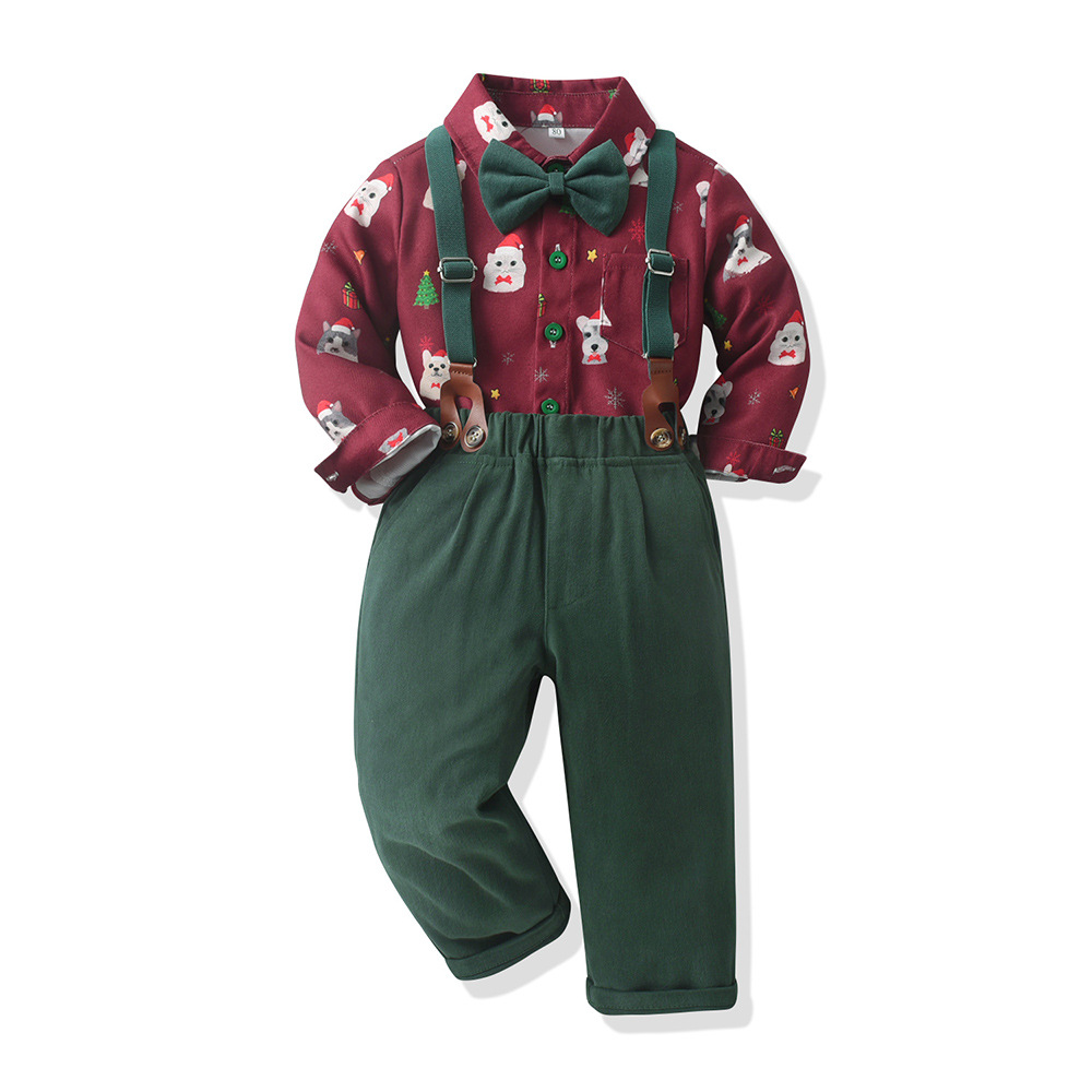 Новая Внешняя торговля, трансграничная Осенняя детская одежда, костюм для мальчиков, хлопковая рубашка с длинными рукавами, ремни, рождественское платье для одного года